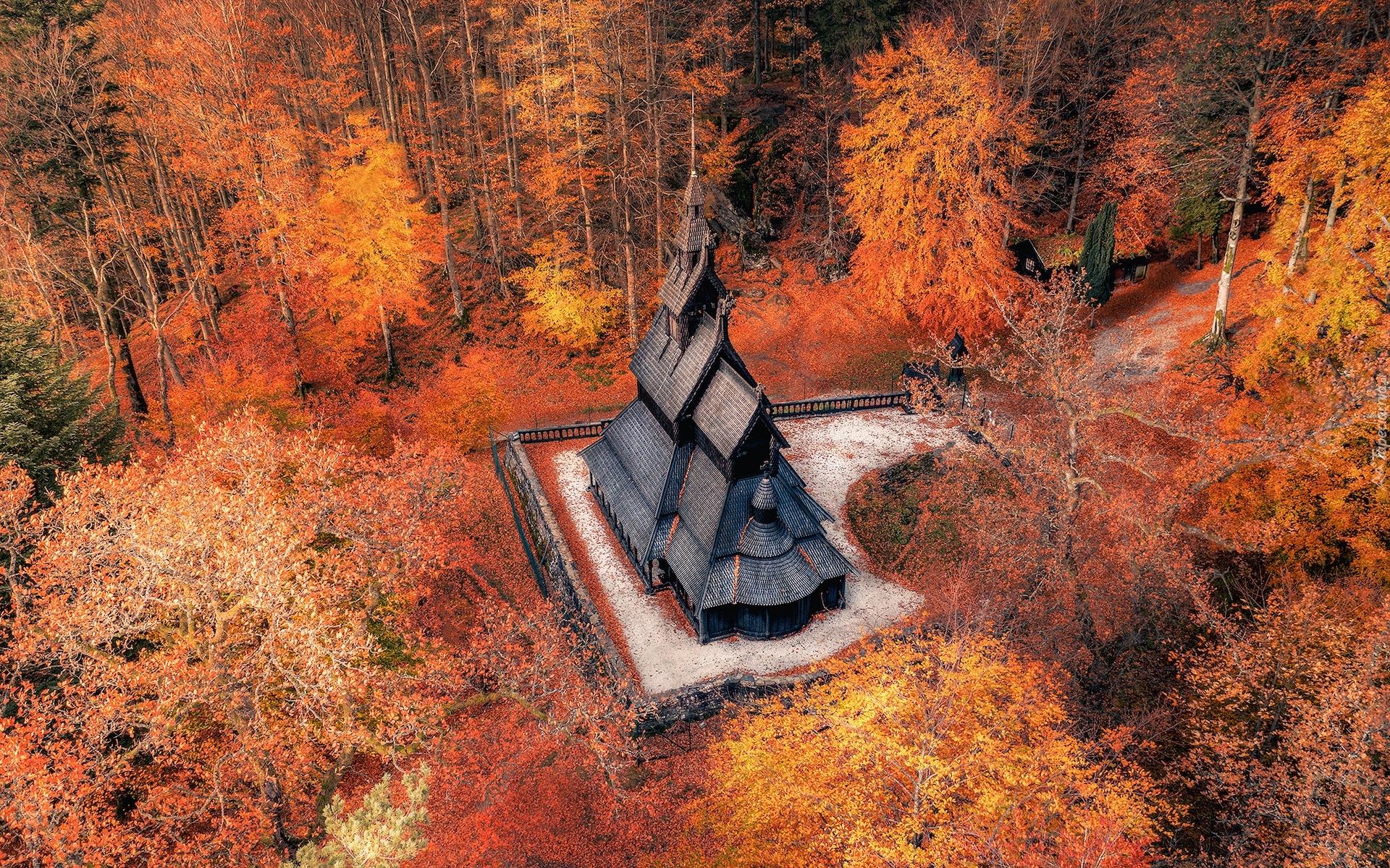 Edytor tapety: Kościół klepkowy w norweskiej miejscowości Bergen