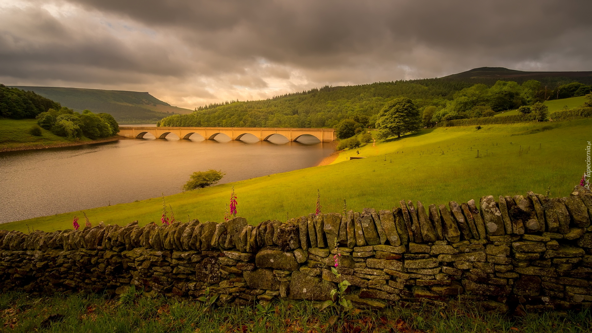 Edytor tapety: Most na jeziorze Ladybower Reservoir