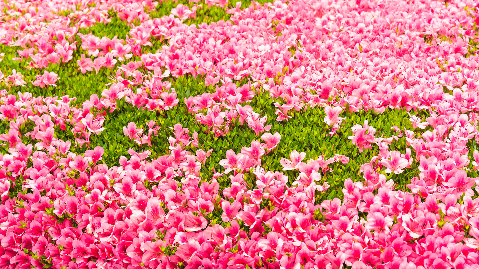 Edytor tapety: Różowe kwiaty kwitnące na łące