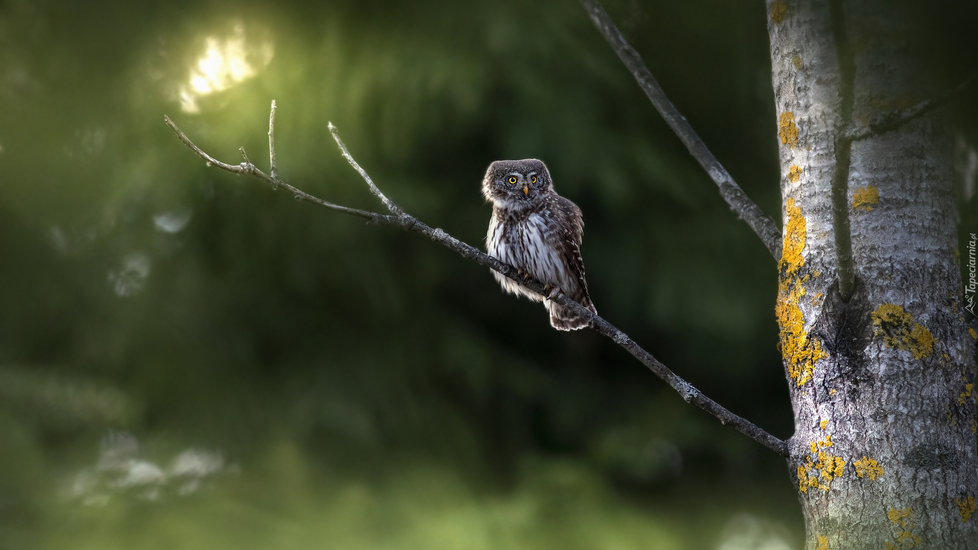 Edytor tapety: Sóweczka zwyczajna na gałązce
