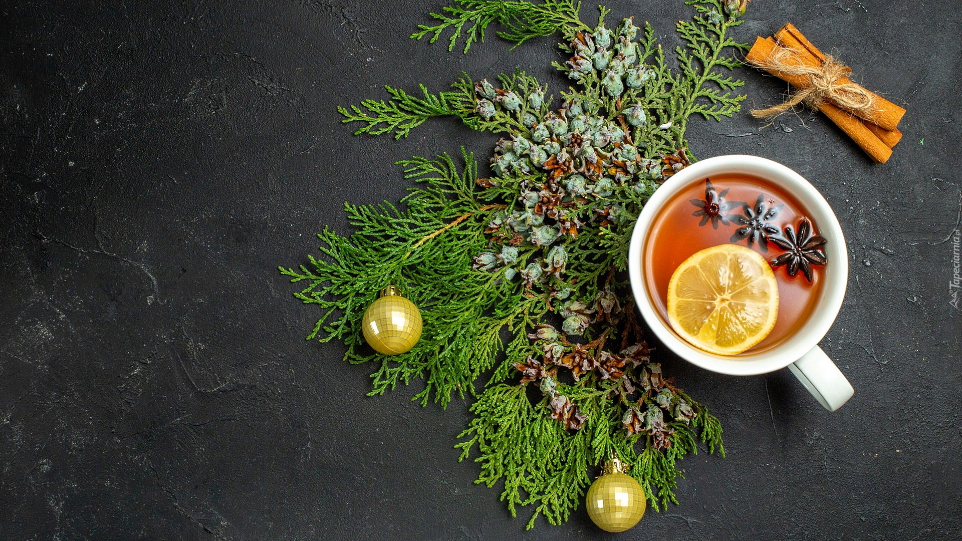 Edytor tapety: Kubek rozgrzewającej herbaty z cytryną i anyżem