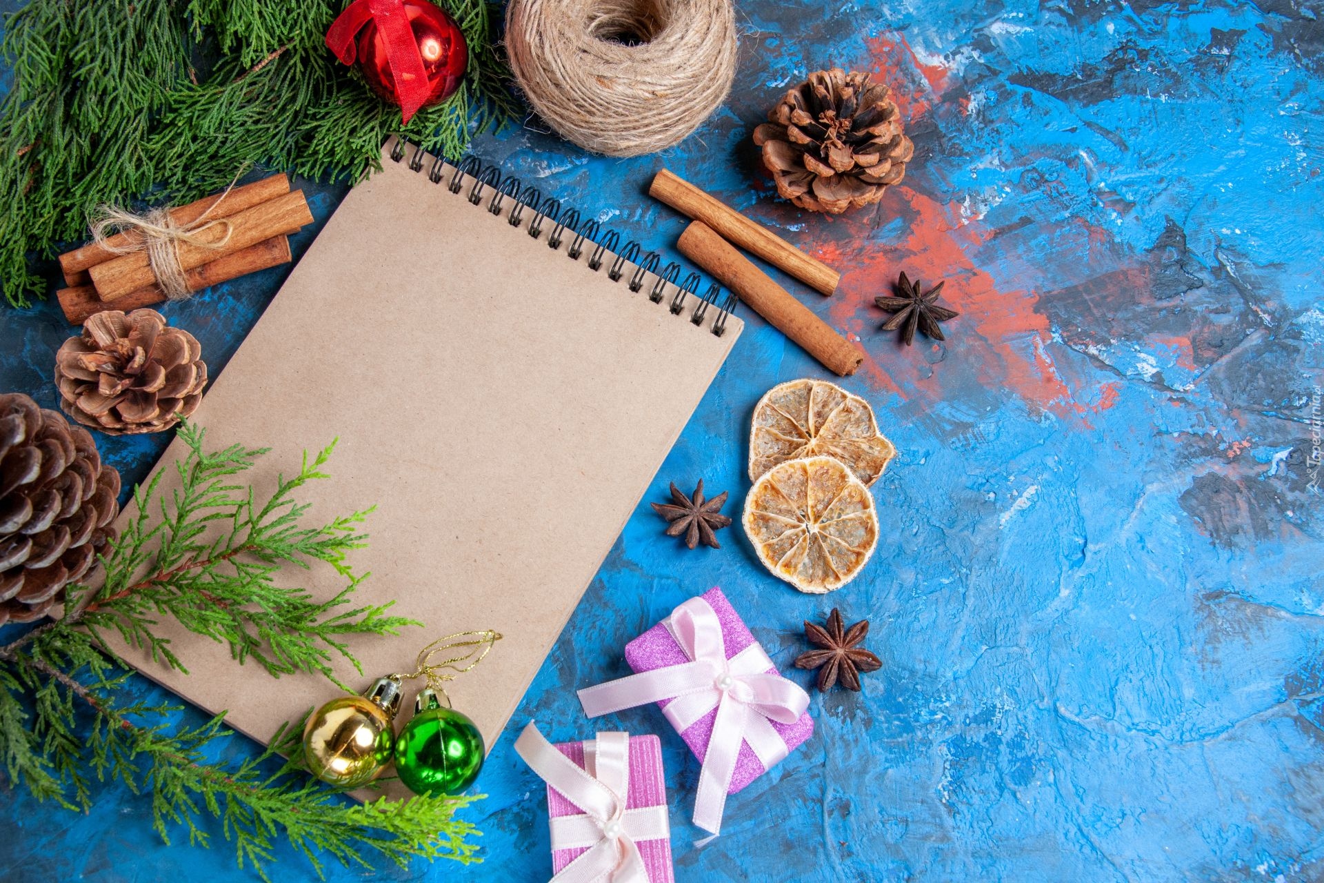 Edytor tapety: Kompozycja świąteczna z notatnikiem