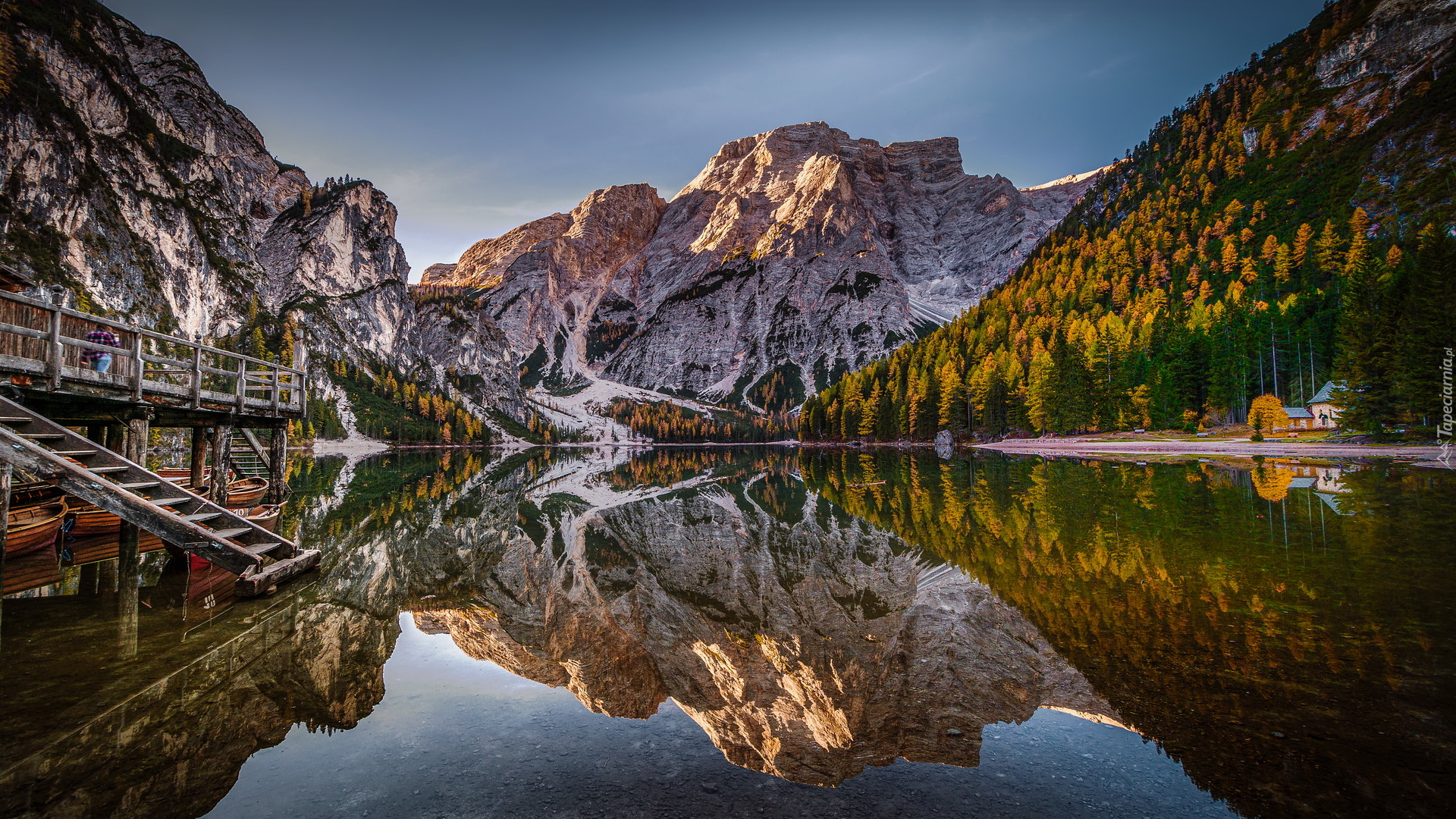 Edytor tapety: Odbicie Dolomitów w jeziorze Lago di Braies