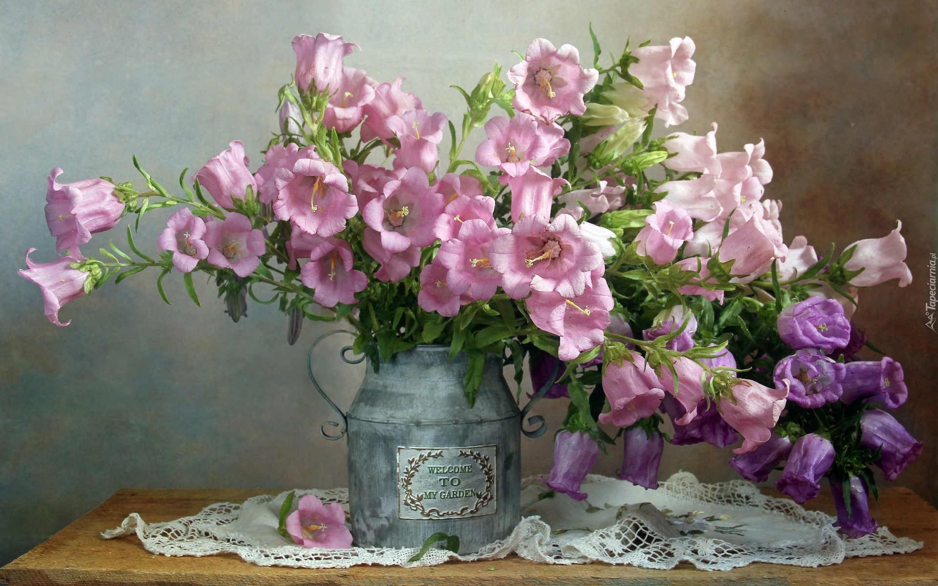Edytor tapety: Różowe i fioletowe dzwonki w dzbanku