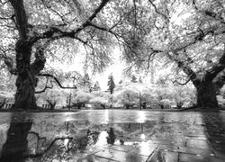 Edytor tapety: Kwitnące drzewa wiosną w parku