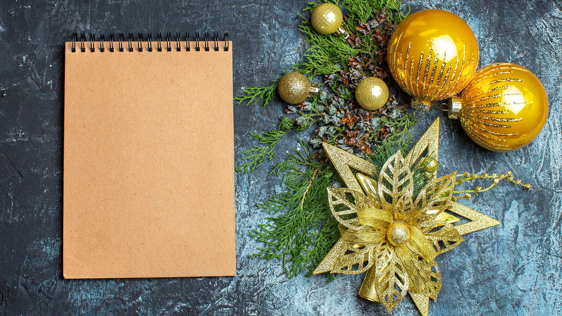 Edytor tapety: Ozdoby świąteczne obok notatnika