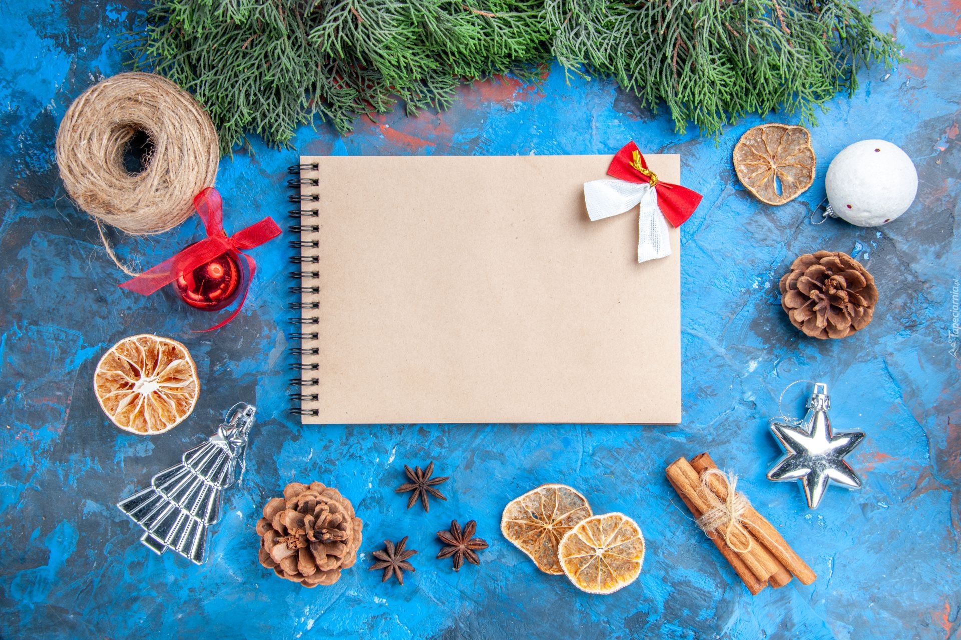Edytor tapety: Notatnik pośród ozdób