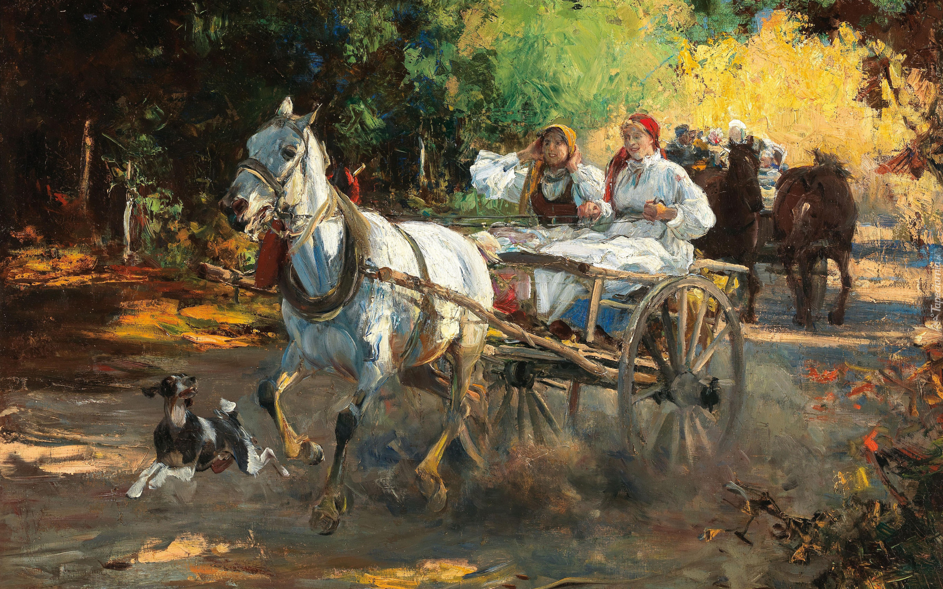 Edytor tapety: Zaprzęg konny na obrazie Alfreda Wierusza Kowalskiego