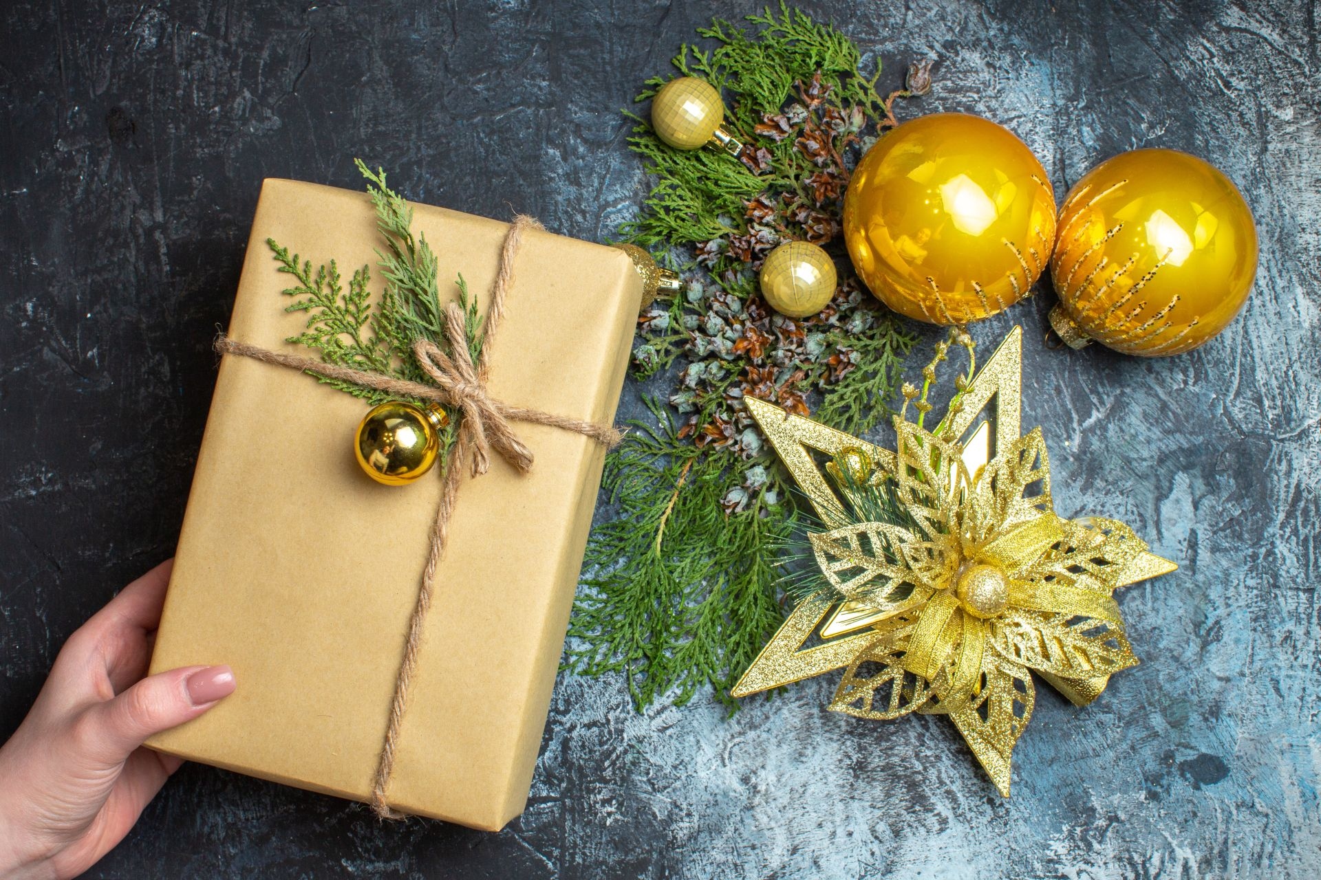 Edytor tapety: Gwiazda i bombki obok prezentu