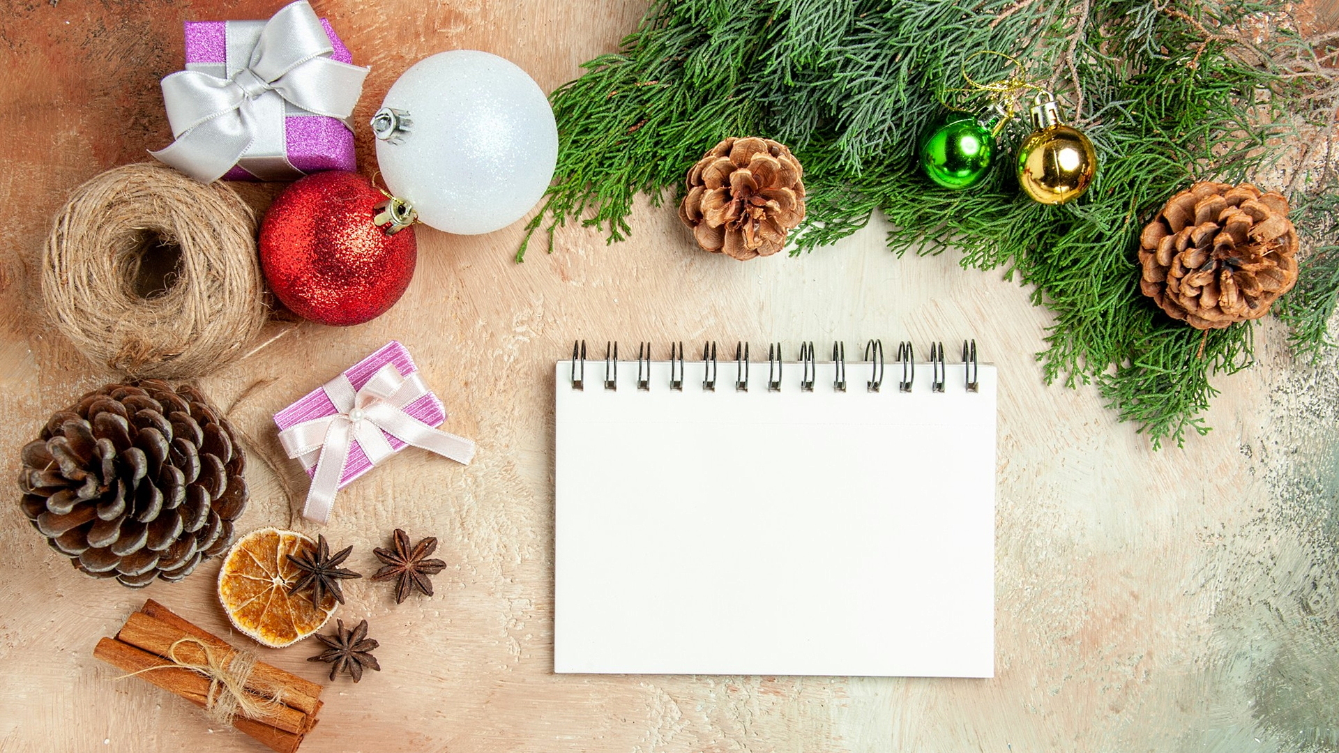 Edytor tapety: Notatnik pośród ozdób świątecznych