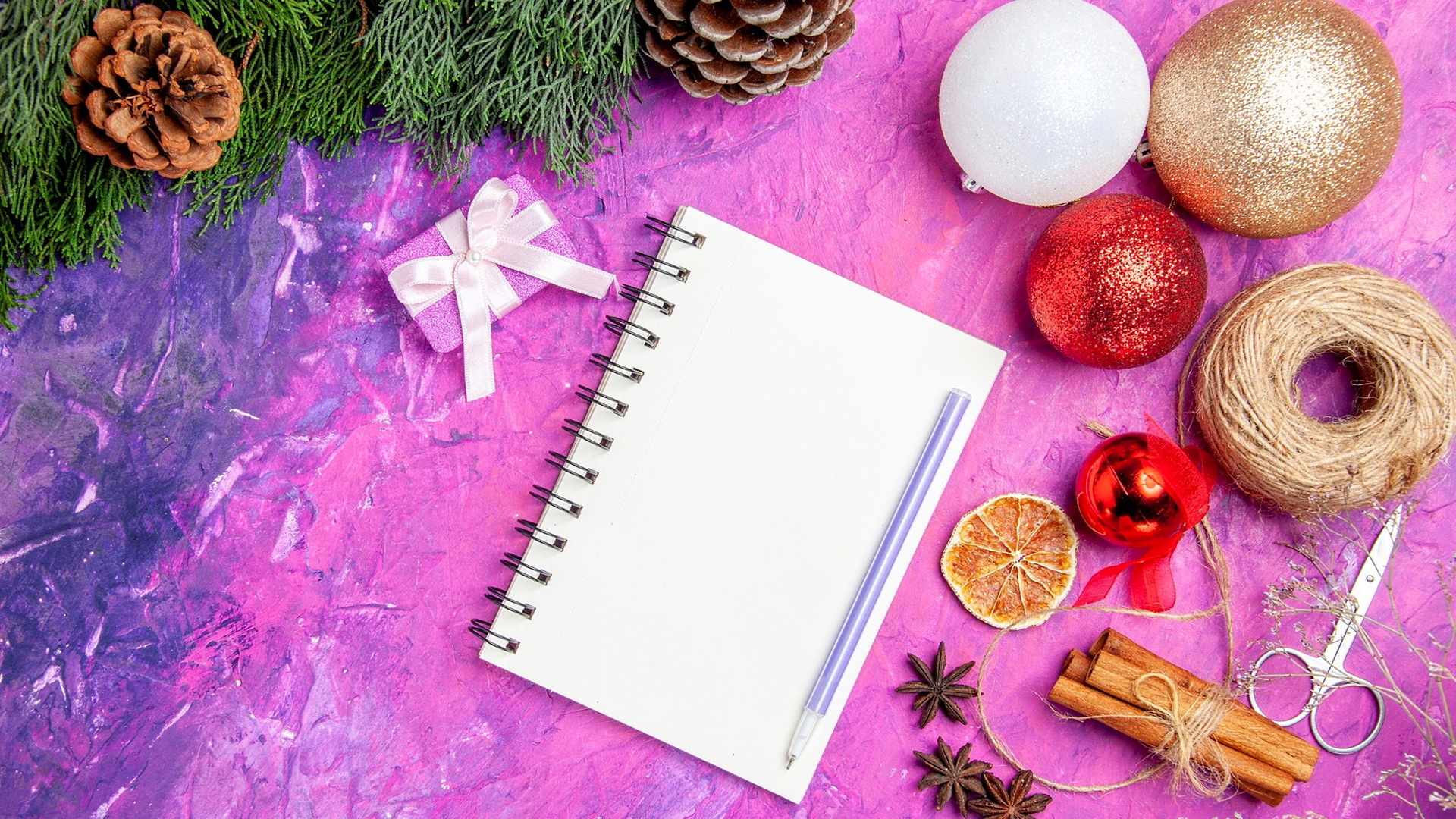 Edytor tapety: Notes i ozdoby świąteczne na różowo-niebieskim tle