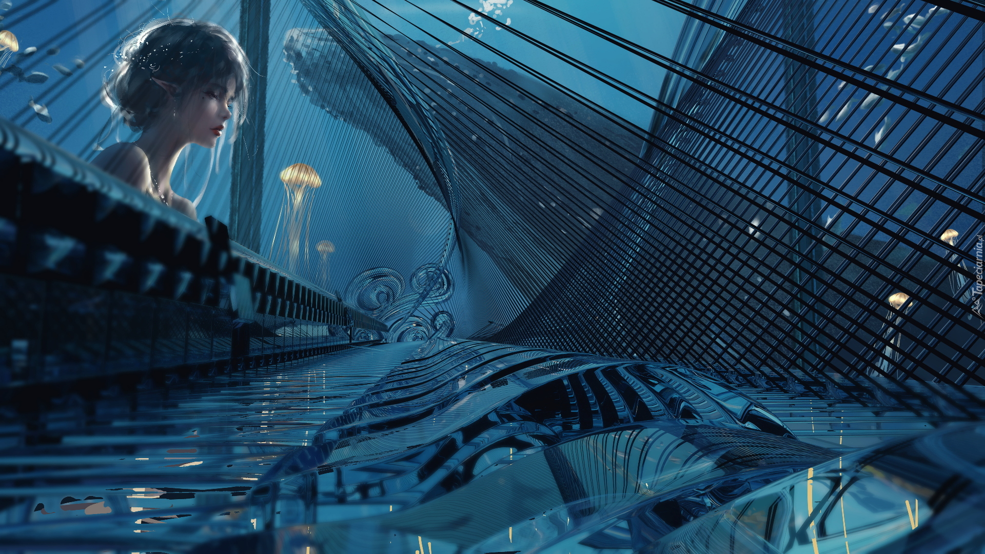 Edytor tapety: Dziewczyna elf grająca na fortepianie