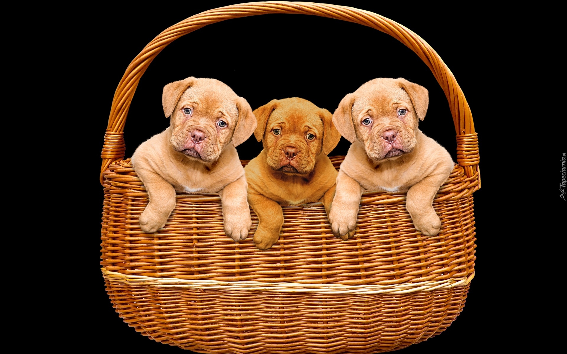 Edytor tapety: Trzy szczeniaki Doug de Bordeaux w koszyku