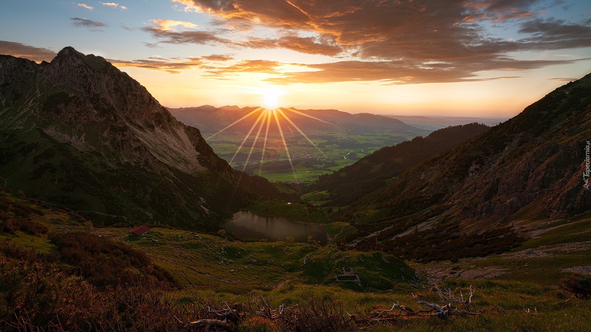 Edytor tapety: Promienie słońca nad Alpami Algawskimi i Obersdorfem