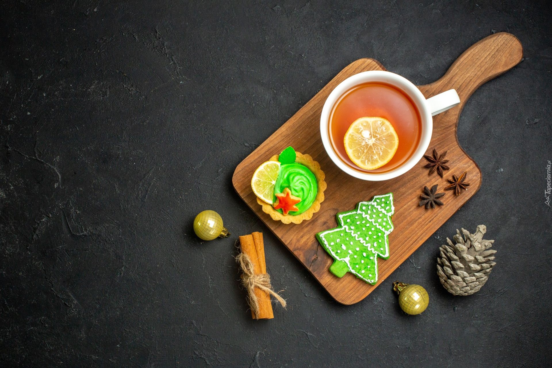 Edytor tapety: Babeczka i piernik obok herbaty na desce