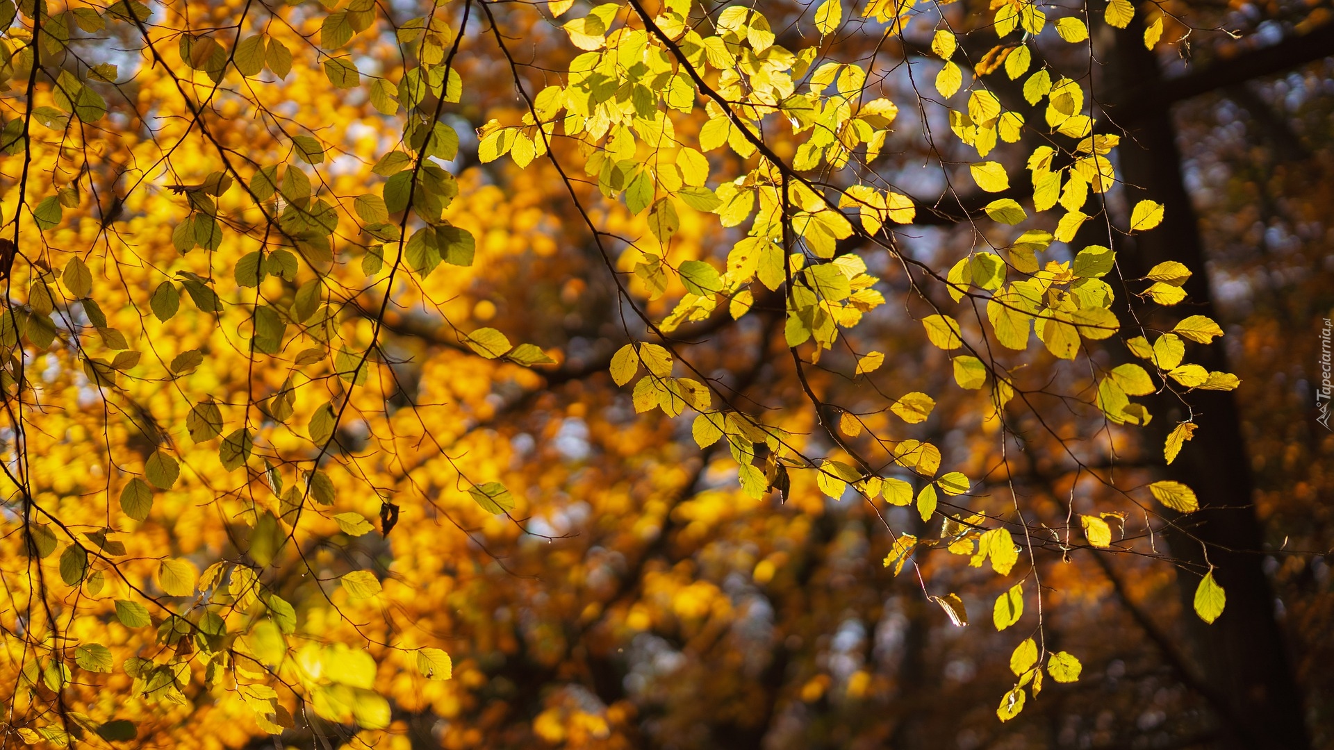 Edytor tapety: Pożółkłe liście na gałęziach