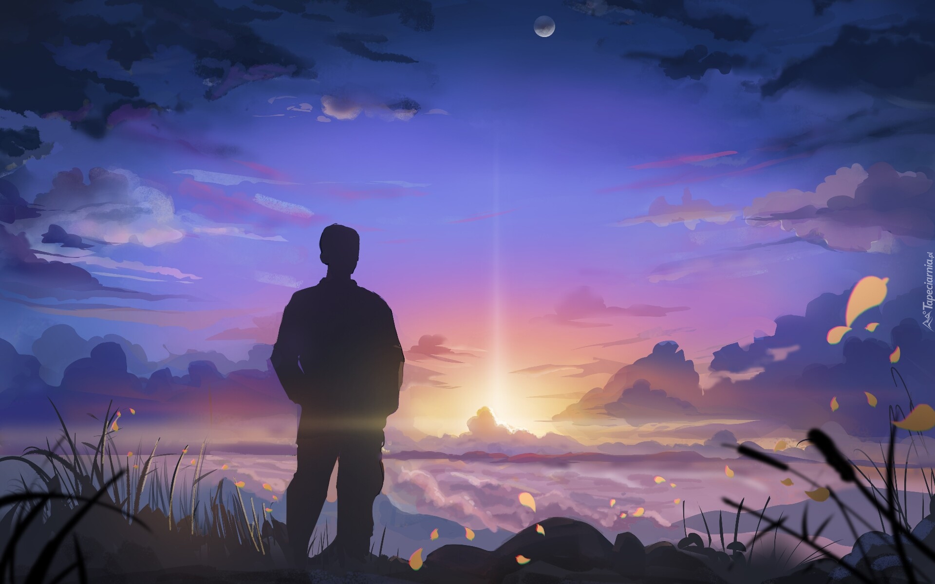 Edytor tapety: Mężczyzna na tle nieba w 2D