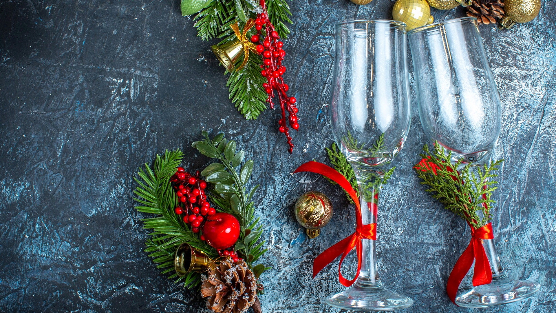 Edytor tapety: Dekoracja z kieliszkami i zielonymi gałązkami