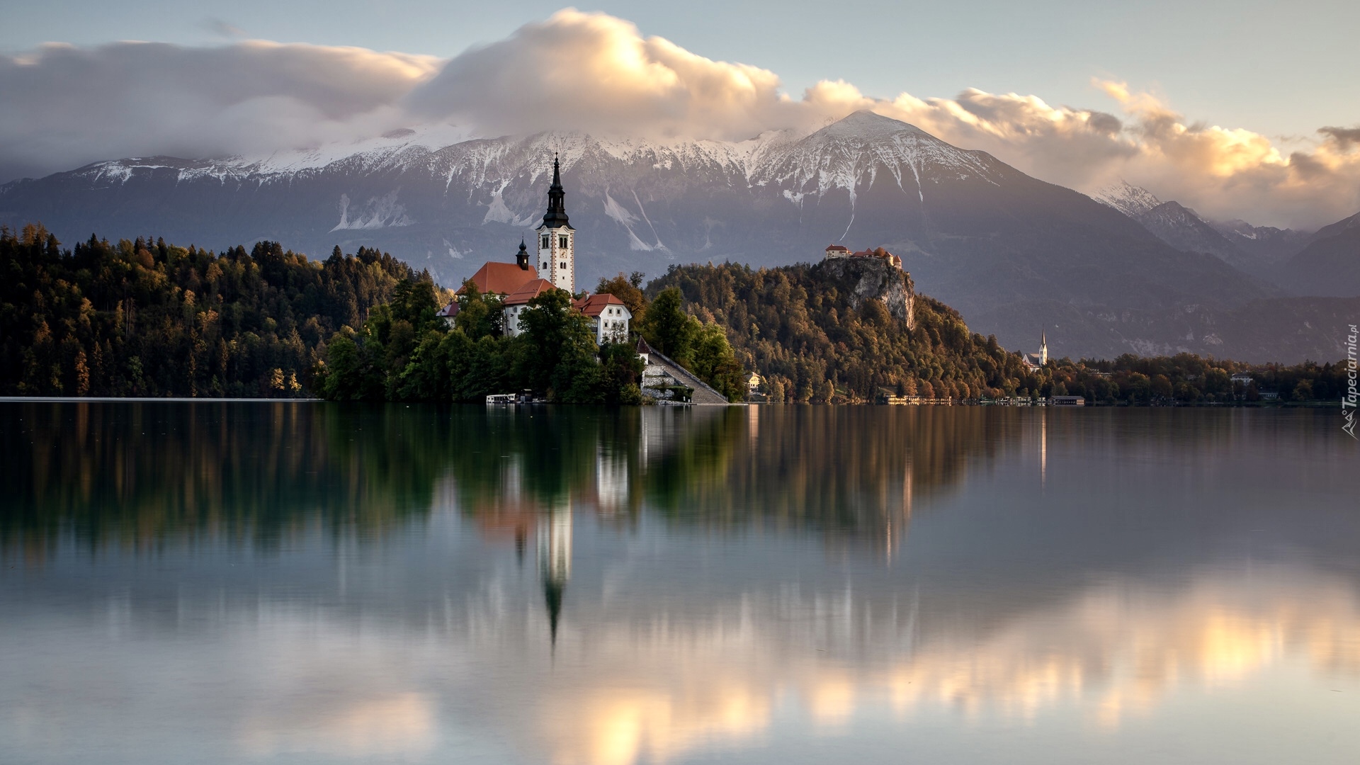Edytor tapety: Kościół na wyspie Blejski Otok nad jeziorem Bled