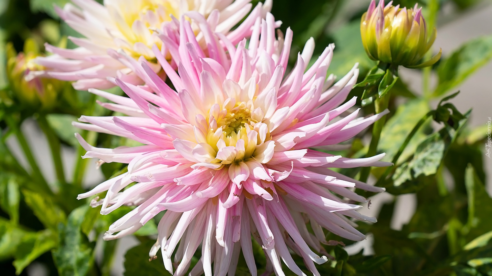 Edytor tapety: Rozkwitnięta jasnoróżowa dalia