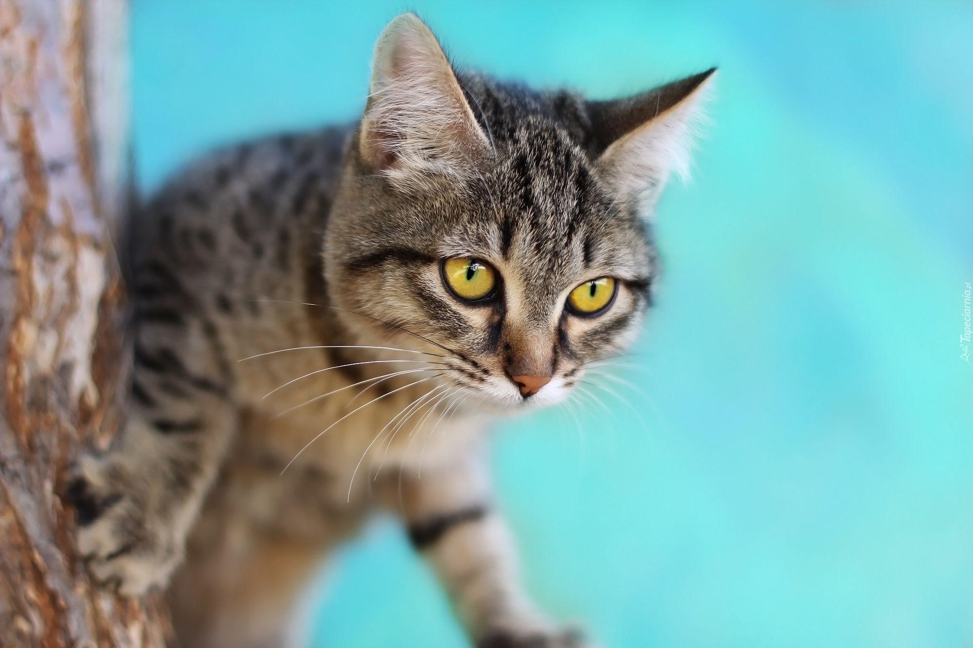 Edytor tapety: Żółtooki kot na niebieskim tle