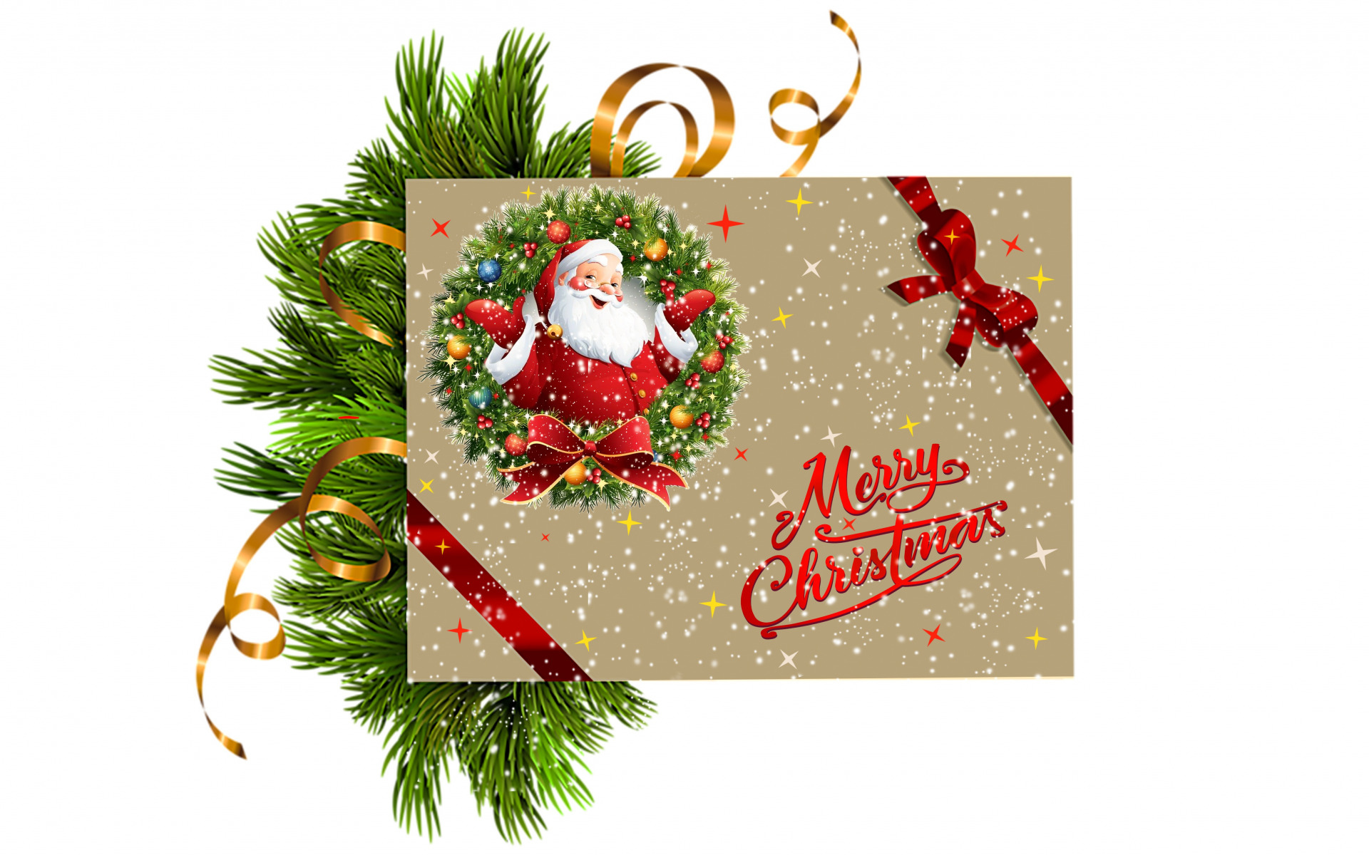 Edytor tapety: Kartka z napisem Merry Christmas na gałązce