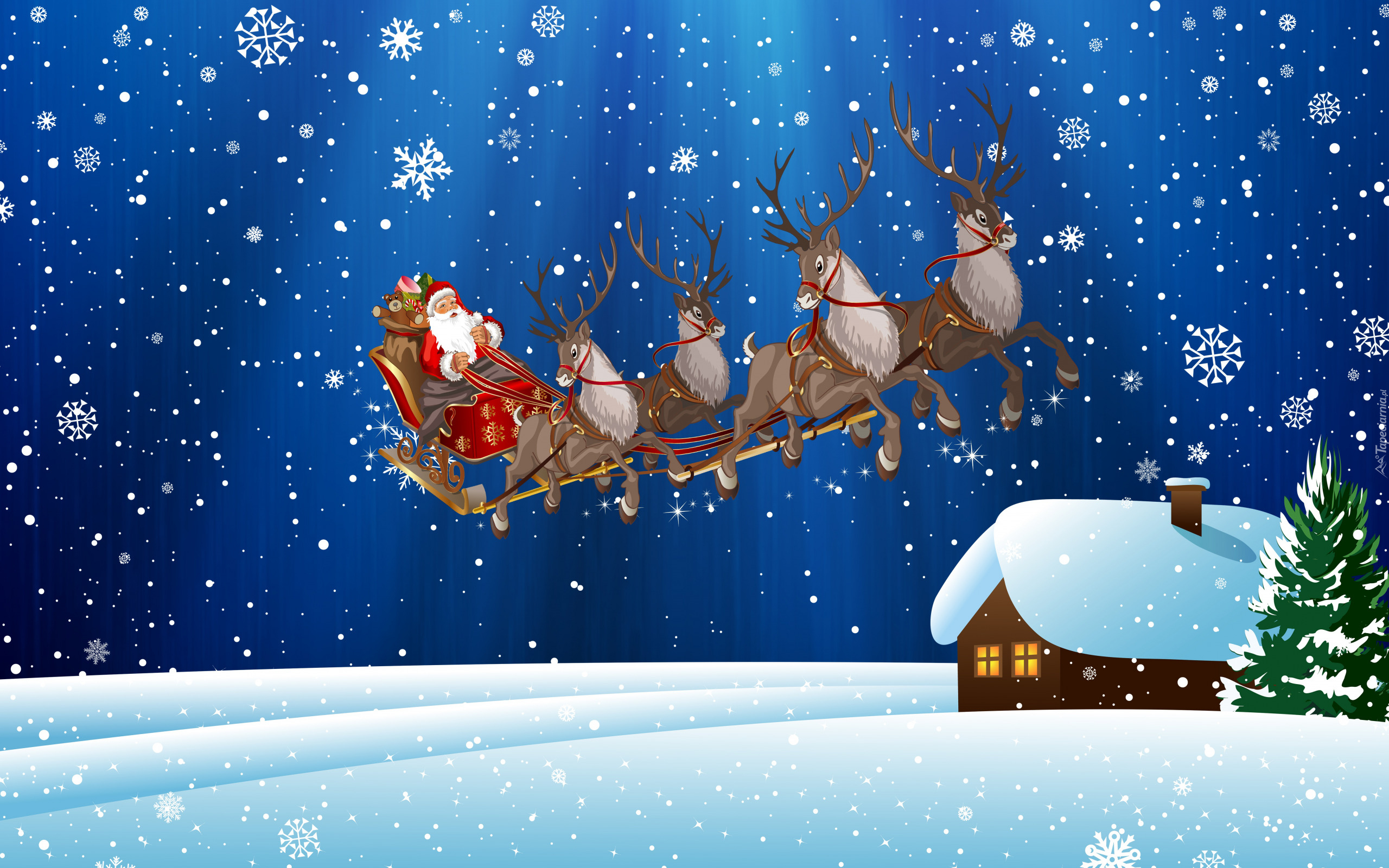 Edytor tapety: Sanie Mikołaja nad zaśnieżonym domem w grafice
