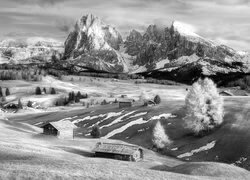 Edytor tapety: Śnieg na płaskowyżu Seiser Alm i ośnieżone góry Sassolungo