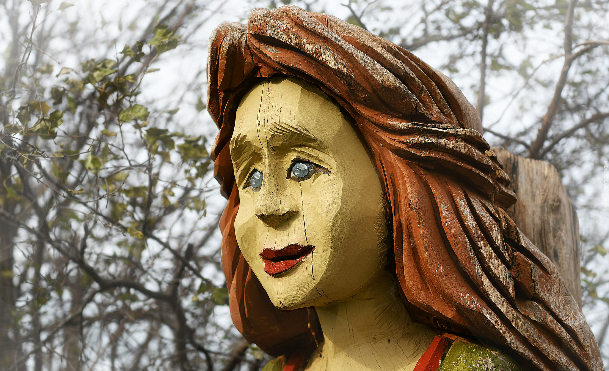 Edytor tapety: Drewniana rzeźba twarzy kobiety