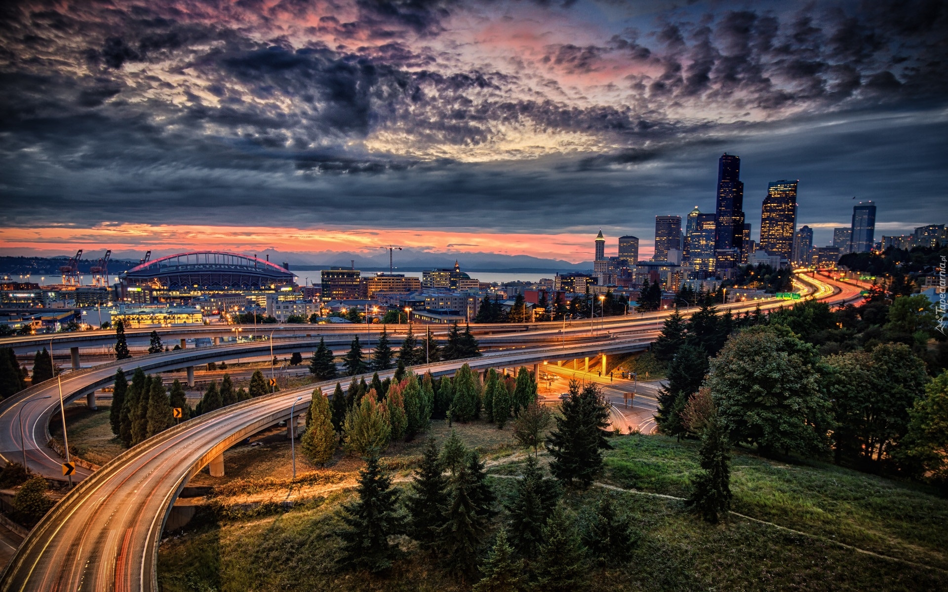 Edytor tapety: Seattle o zachodzie słońca