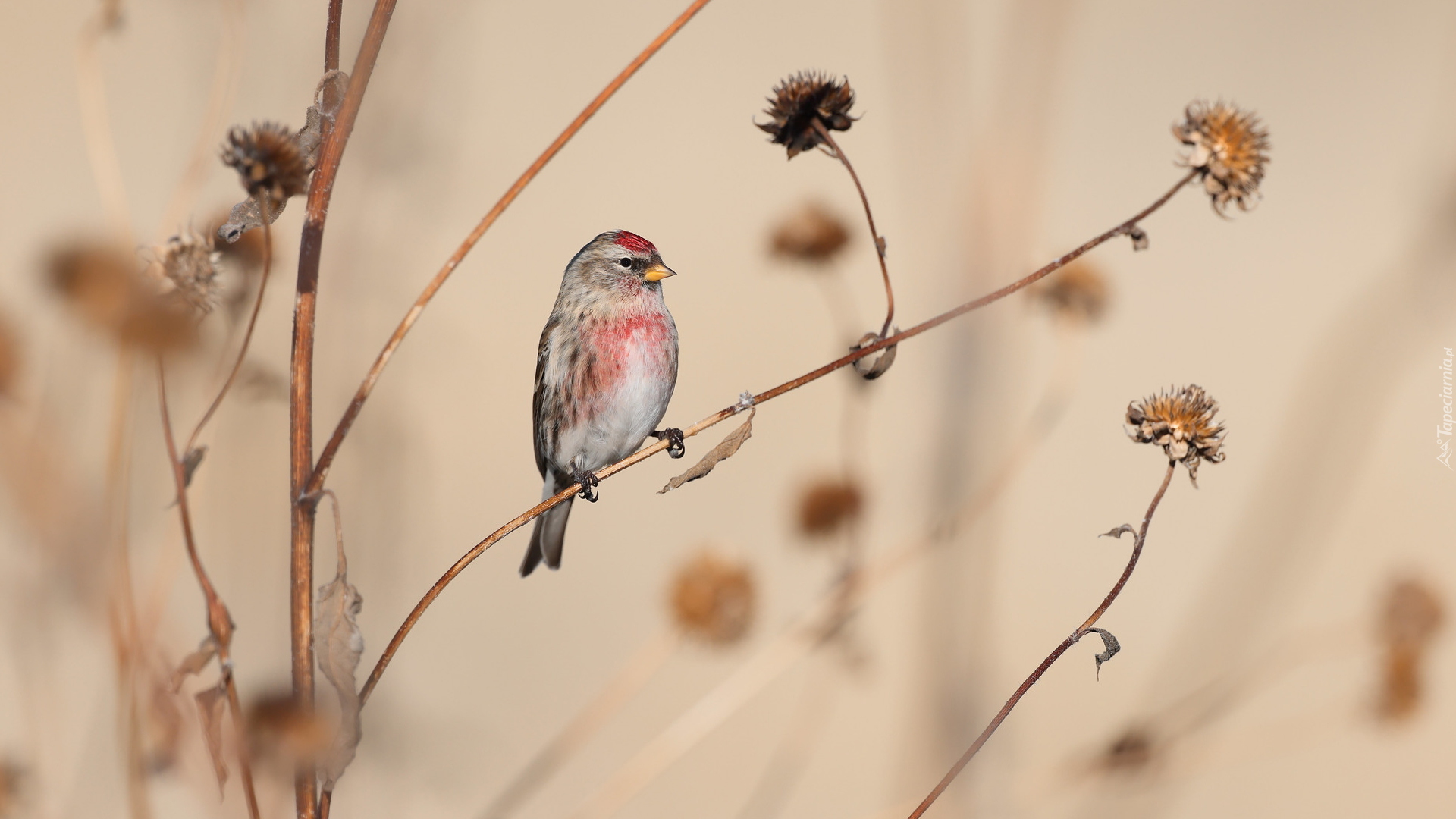 Edytor tapety: Czeczotka zwyczajna na suchej roślinie