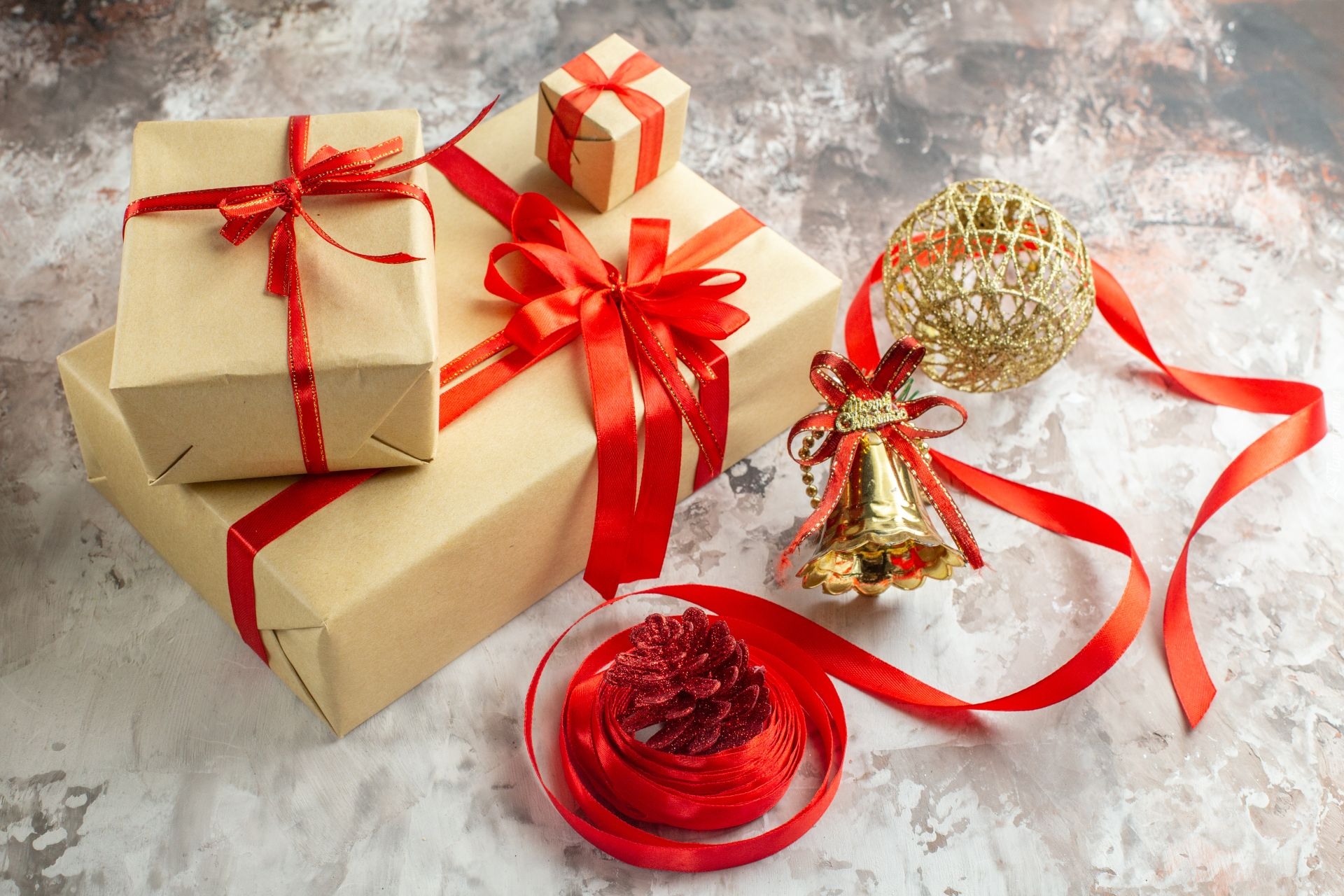 Edytor tapety: Prezenty i szyszka owinięta wstążką