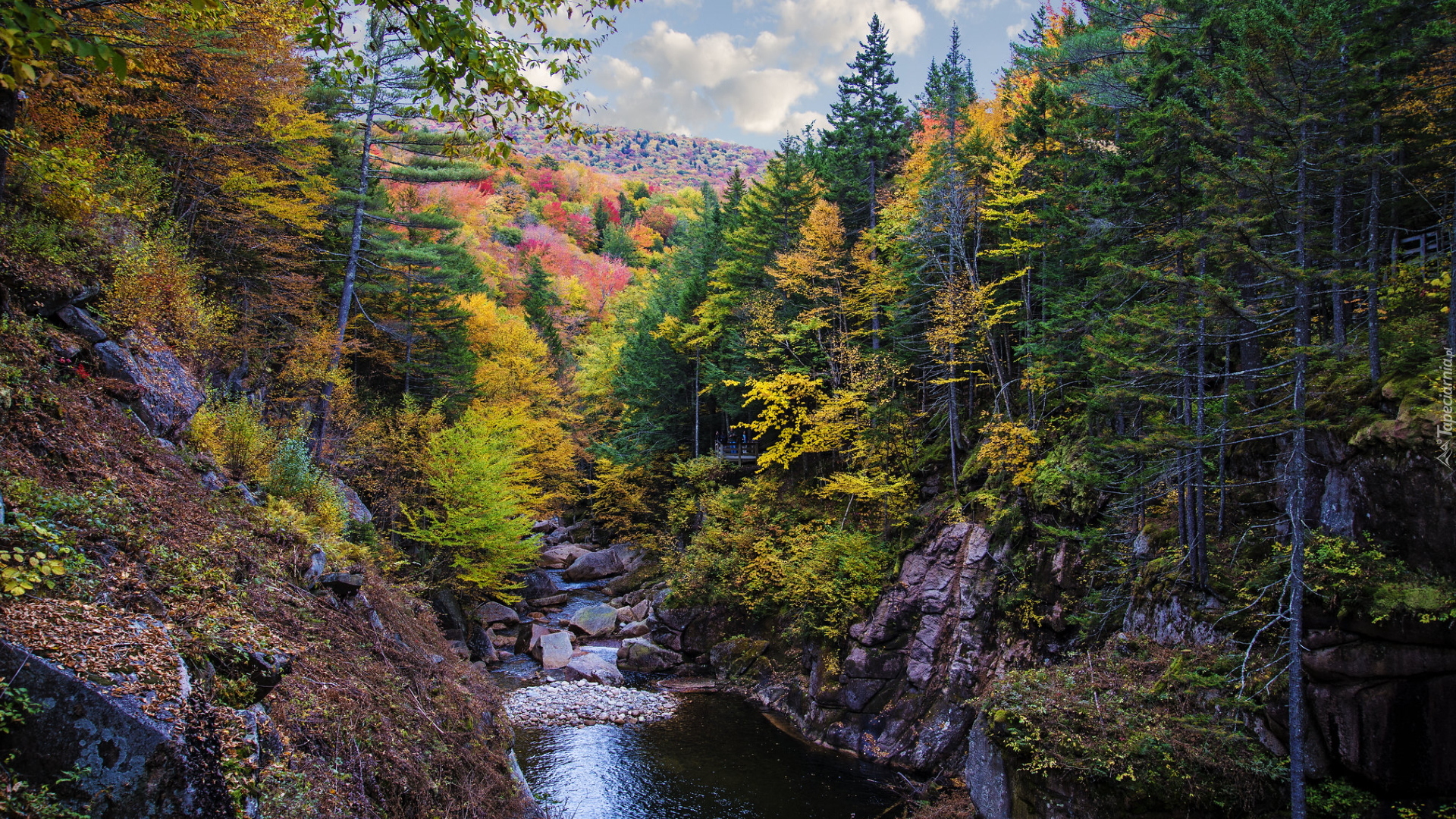 Edytor tapety: Rzeka Pemigewasset River w jesiennym lesie