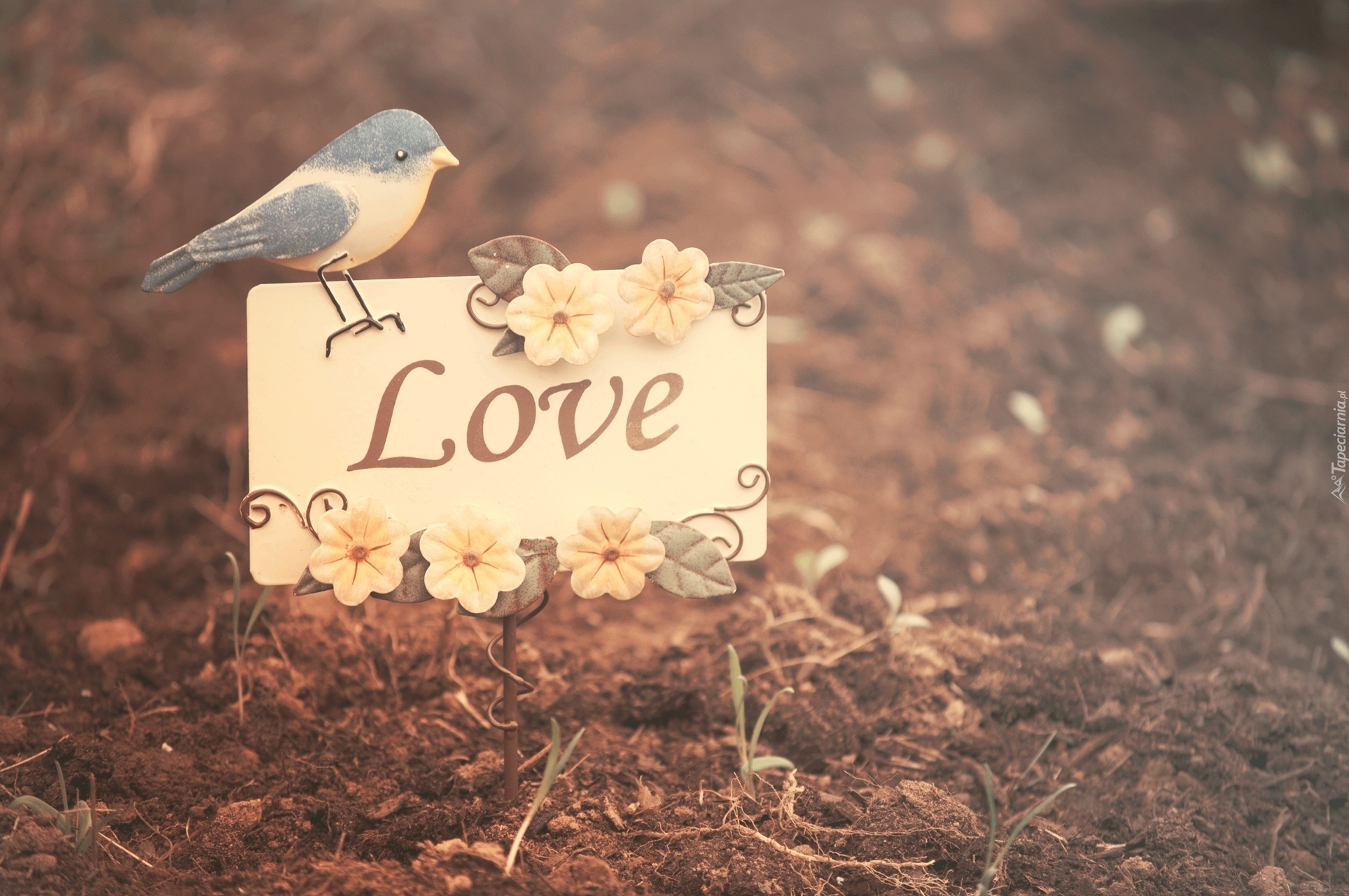 Edytor tapety: Ptak na kartce papieru z napisem love