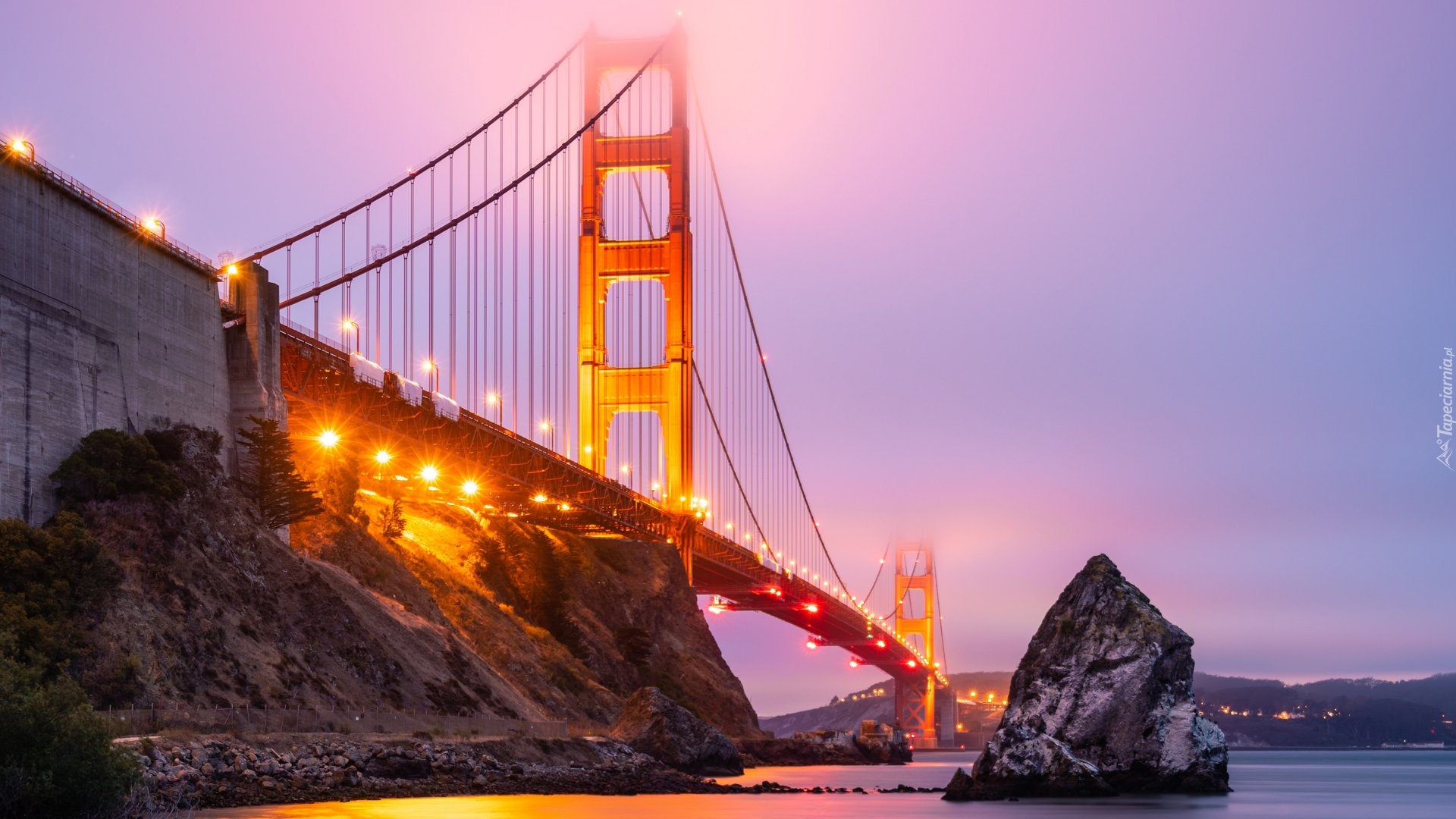 Edytor tapety: Oświetlony most Golden Gate Bridge