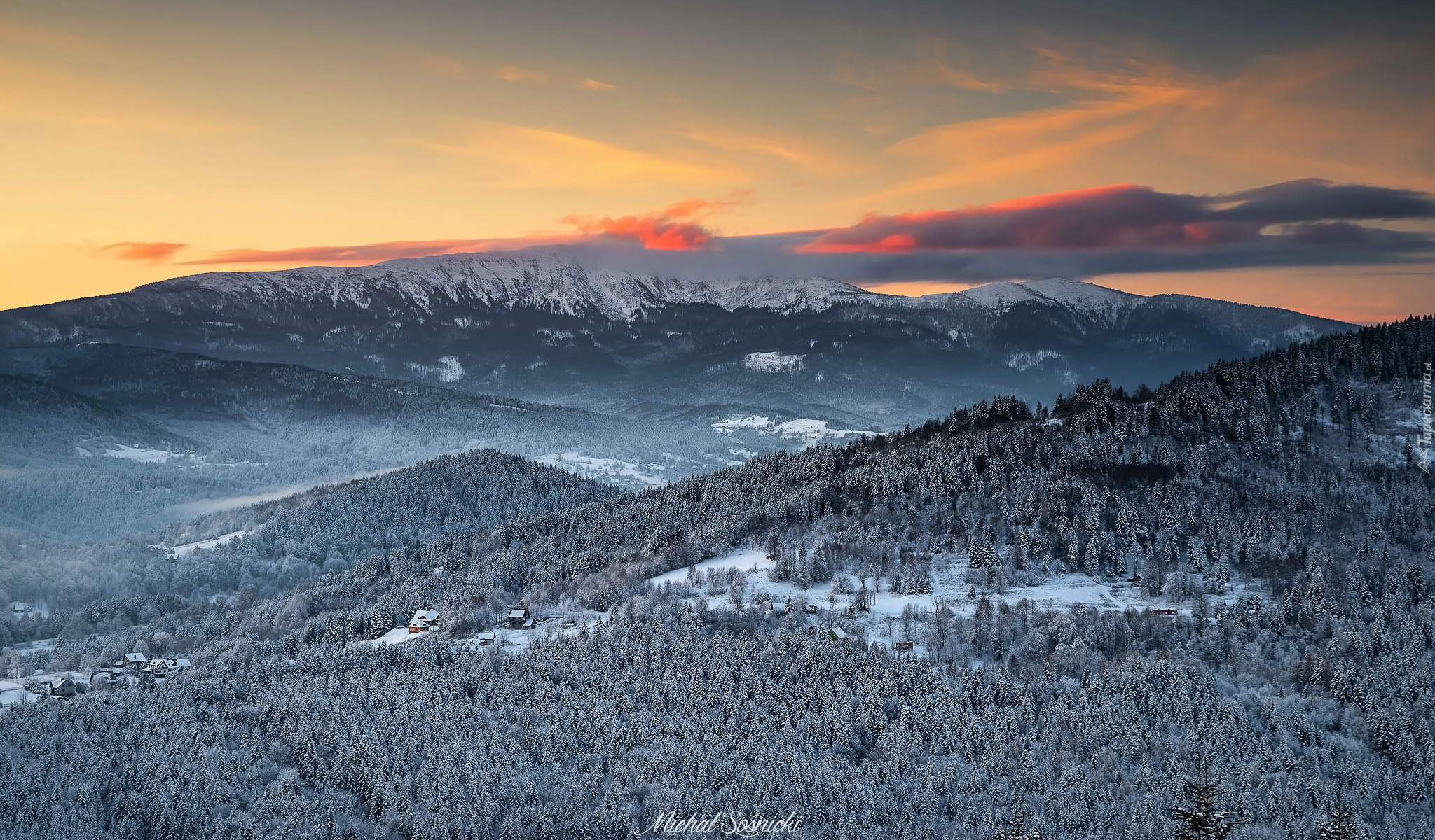Edytor tapety: Ośnieżone lasy na tle Babiej Góry