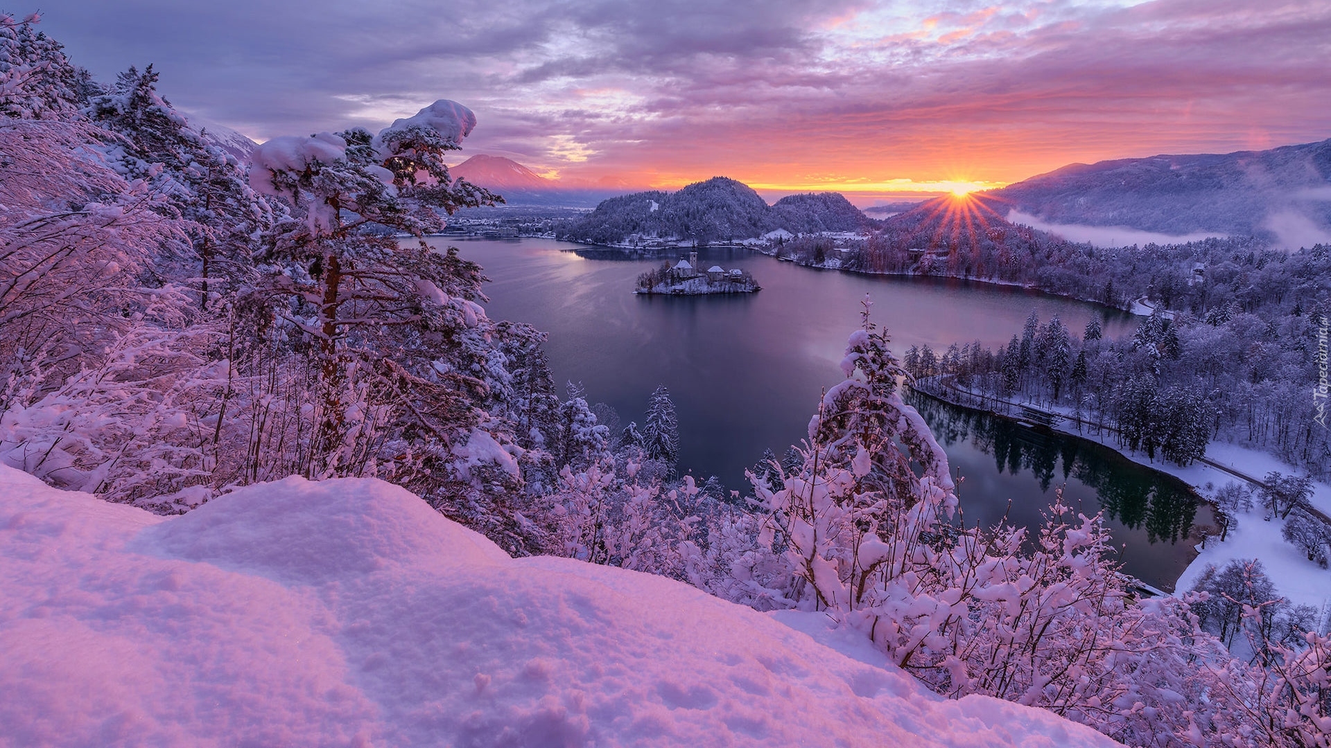 Edytor tapety: Jezioro Bled w zimowej scenerii