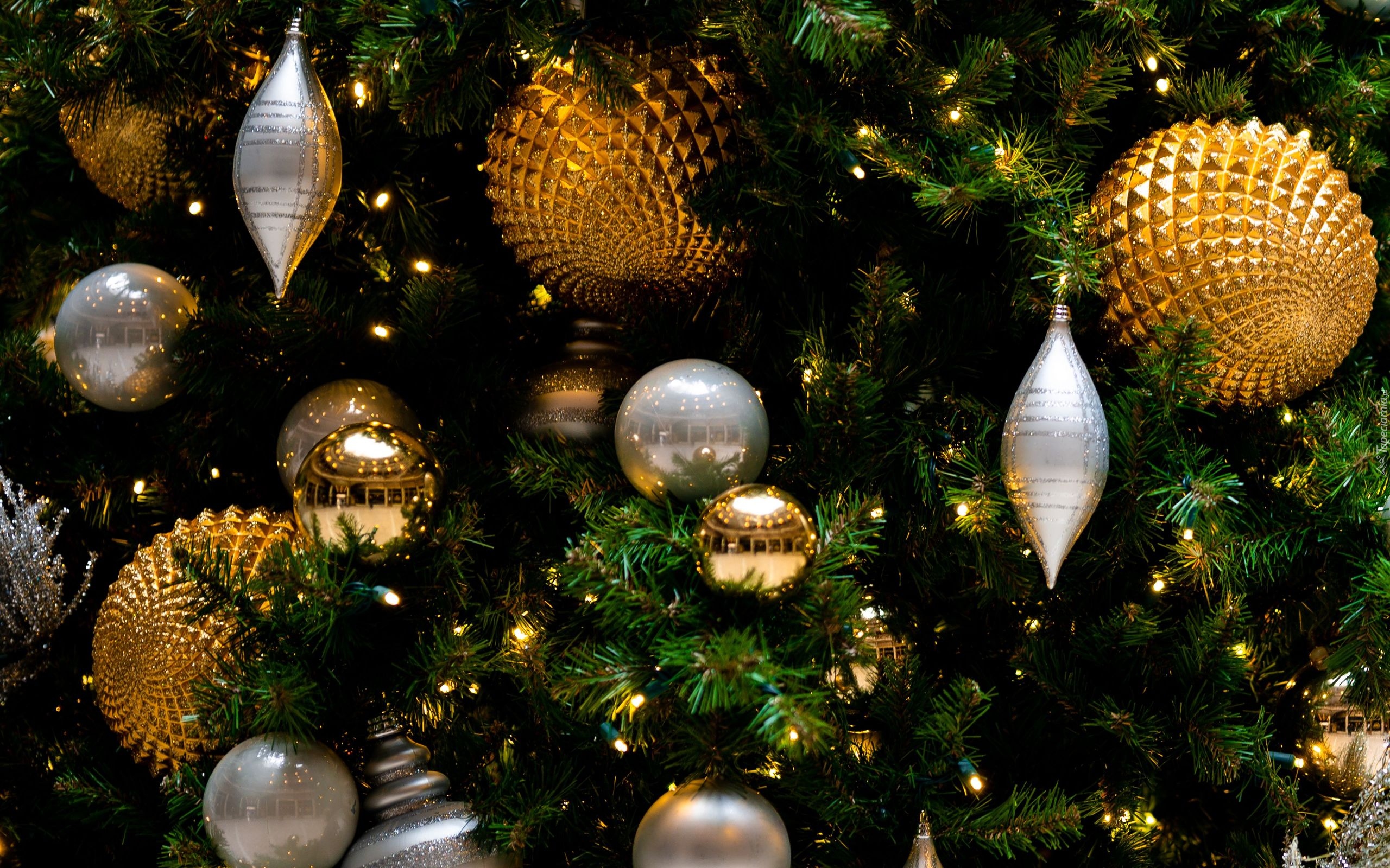 Edytor tapety: Złote i srebrne bombki na choince