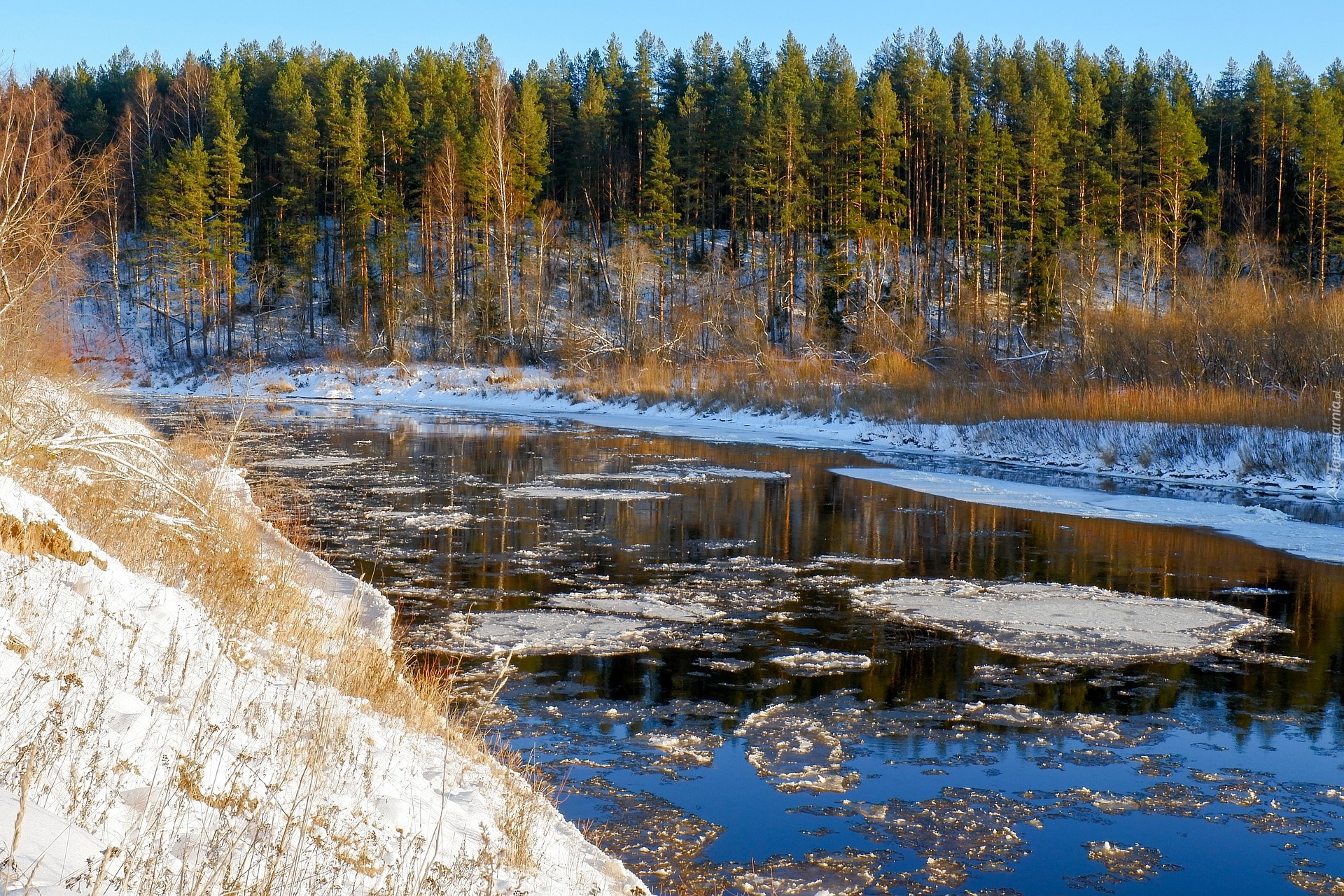 Edytor tapety: Kra na leśnej rzece
