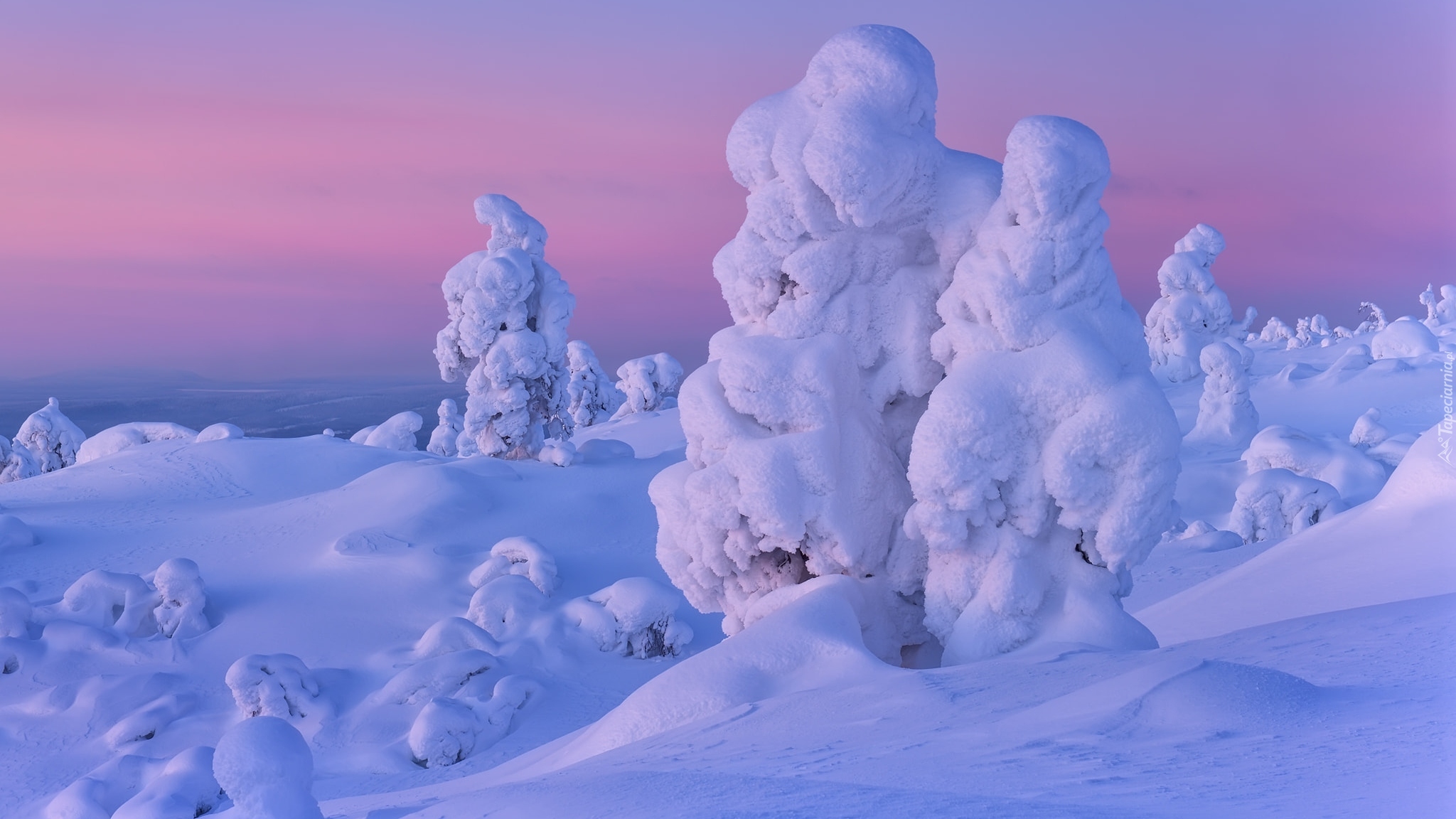 Edytor tapety: Drzewa ośnieżone w zaspach