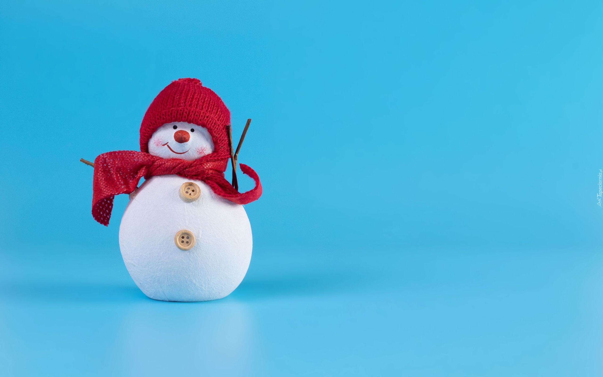 Edytor tapety: Bałwanek w czapce i szaliku na niebieskim tle