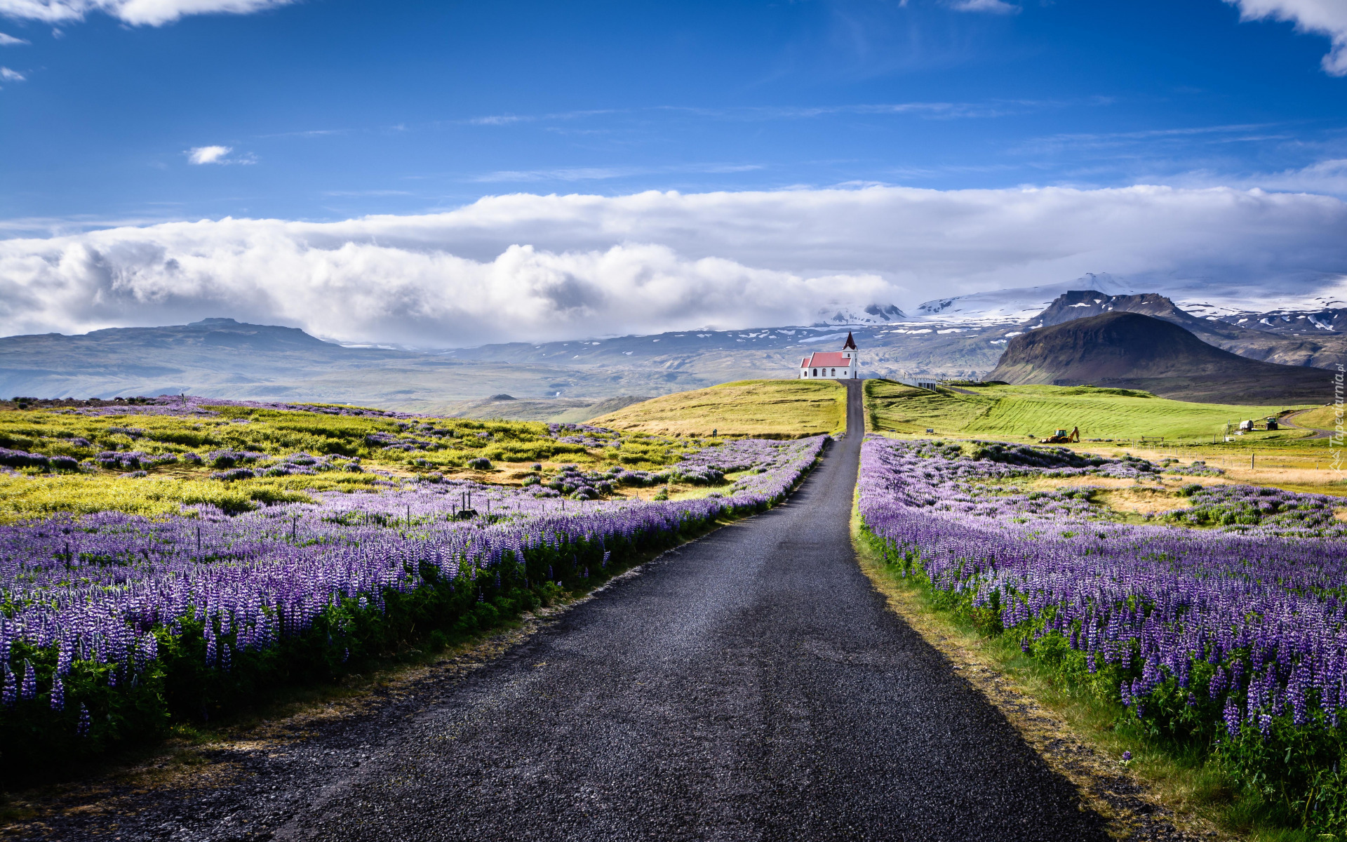 Edytor tapety: Łubiny przy drodze do kościoła na Półwyspie Snaefellsnes