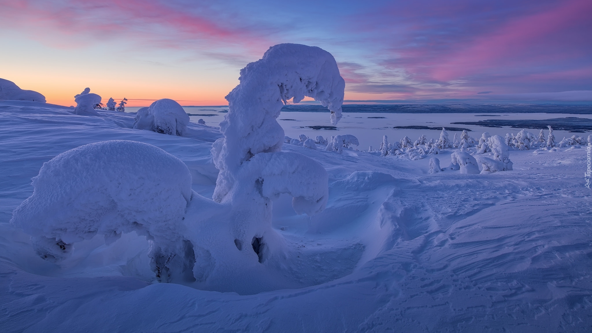Edytor tapety: Ośnieżone drzewa na Półwyspie Kolskim w Rosji