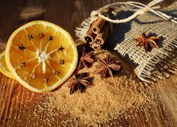 Edytor tapety: Plasterki cytryny z laskami cynamonu i gwiazdkami anyżu