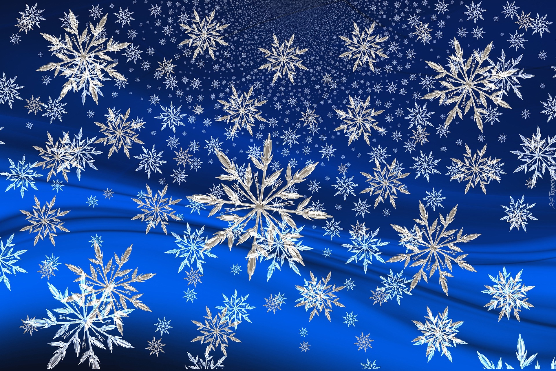 Edytor tapety: Płatki śniegu na niebieskim tle w grafice