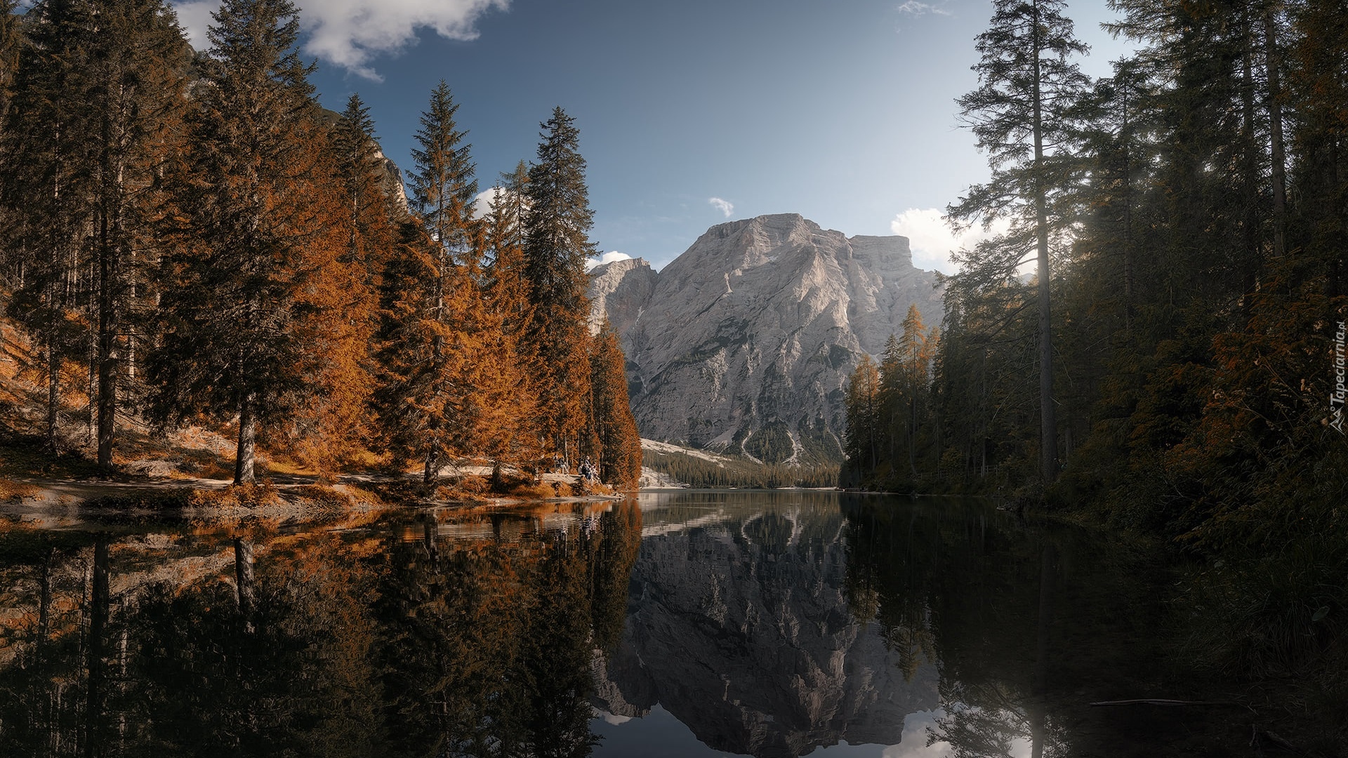 Edytor tapety: Jezioro Lago di Braies i drzewa w Dolomitach