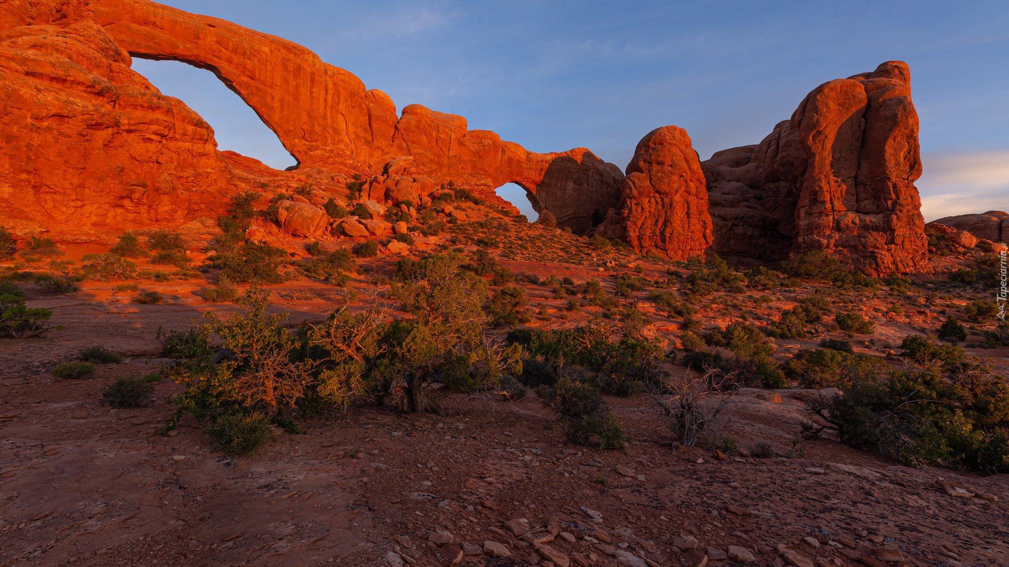 Edytor tapety: Rozświetlone słońcem skały w Parku Narodowym Arches