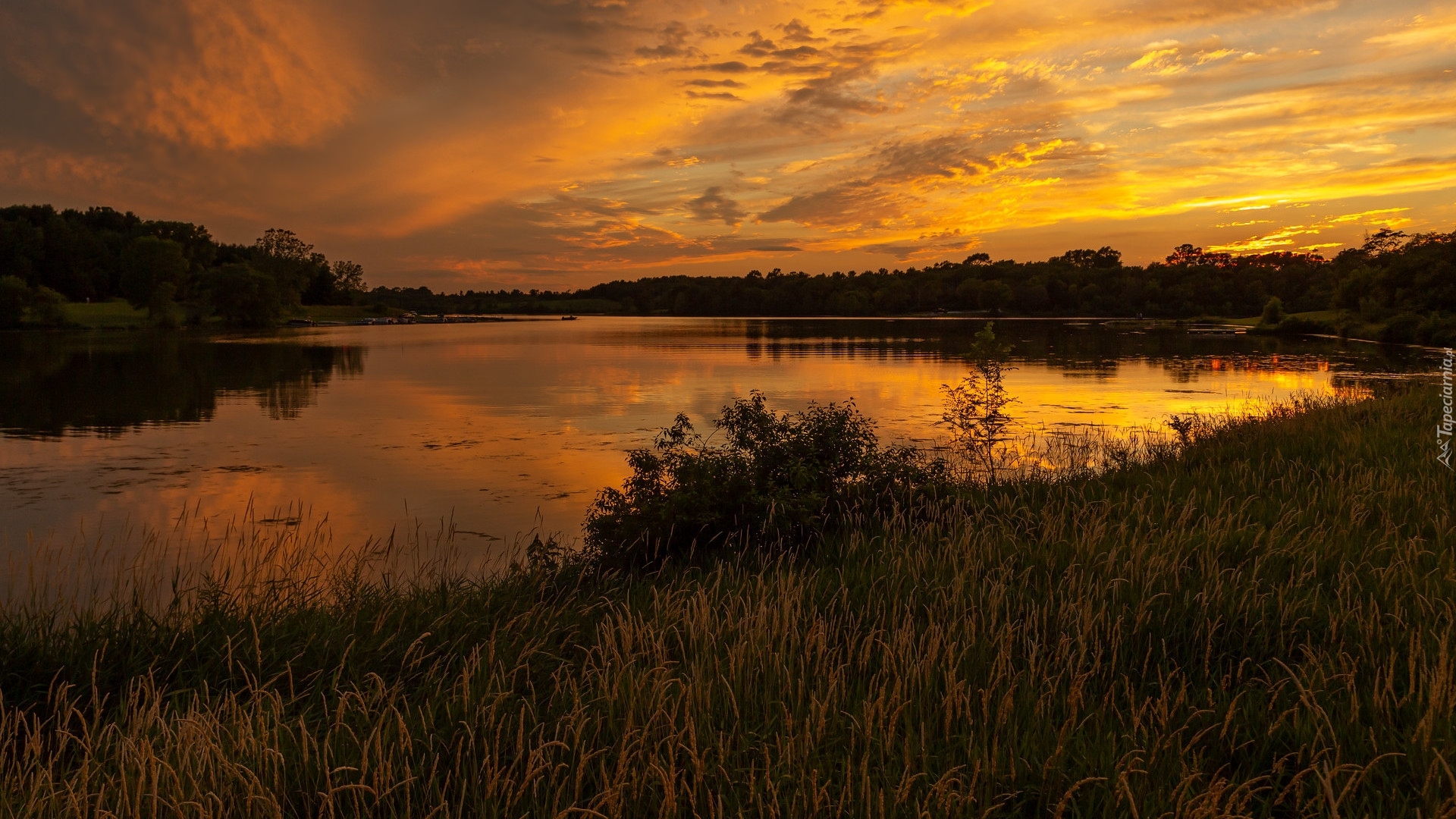 Edytor tapety: Kolorowe niebo nad lasem i rzeką