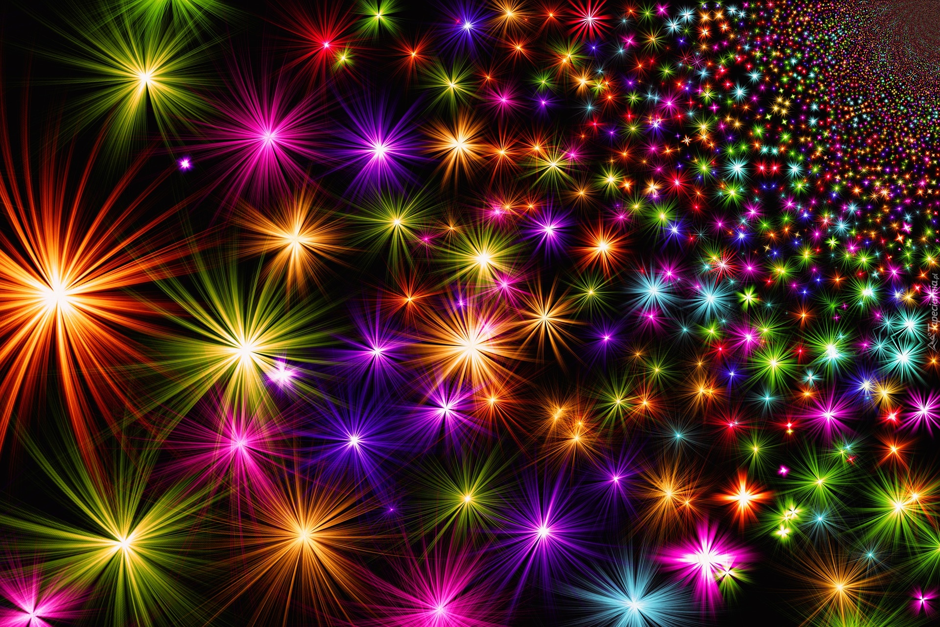 Edytor tapety: Kolorowe gwiazdy na czarnym tle w grafice