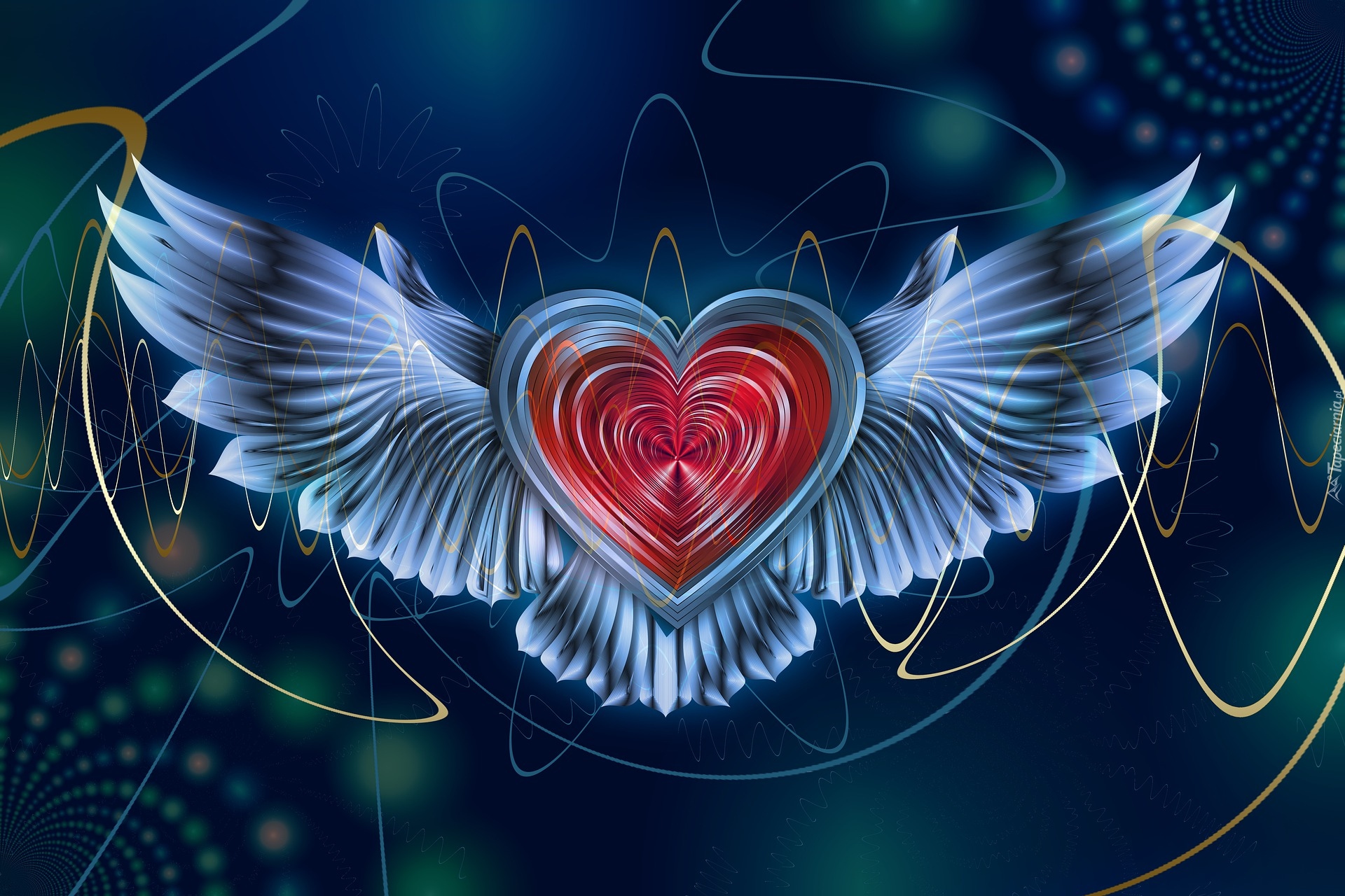 Edytor tapety: Serce ze skrzydłami w grafice